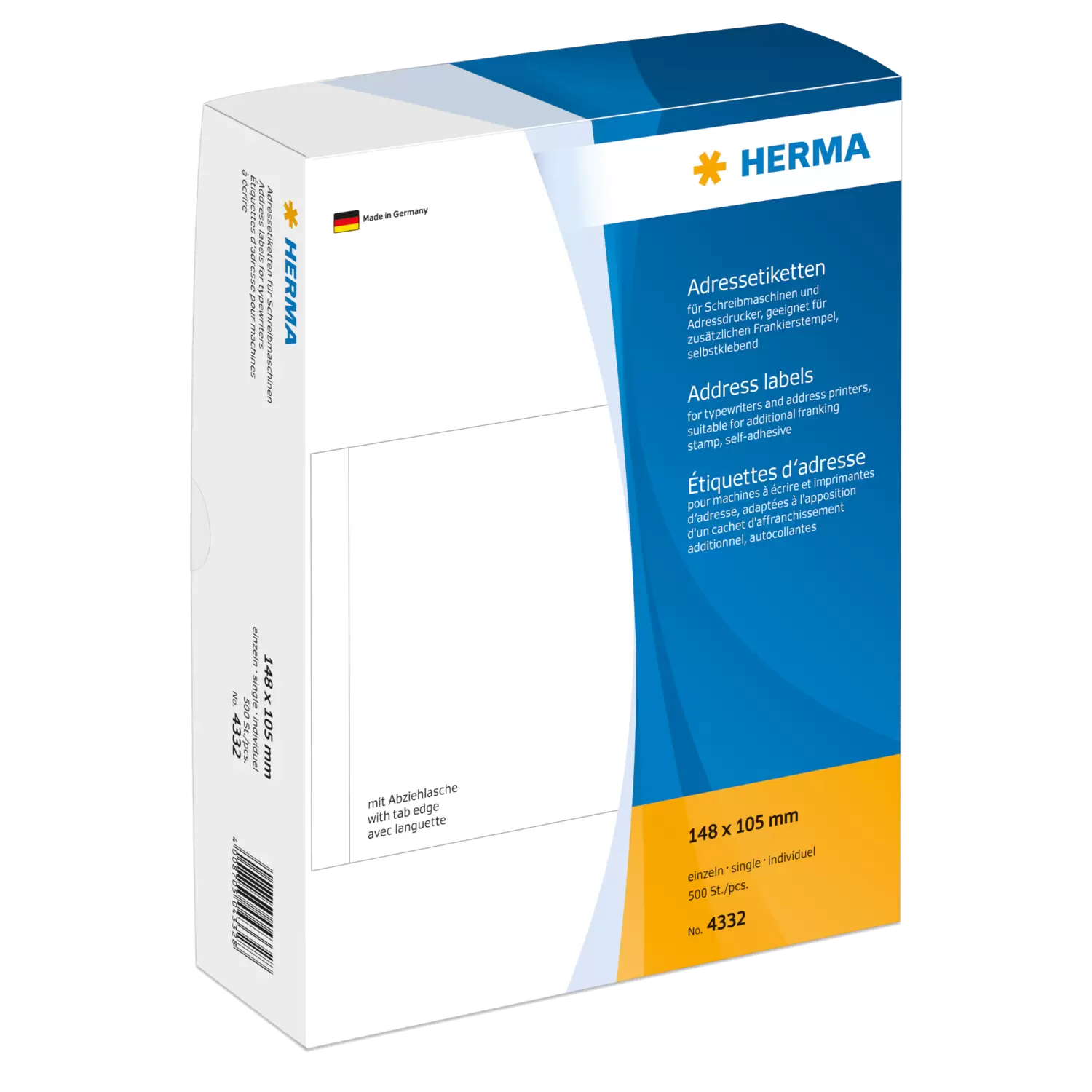 Adresetiketten voor schrijfmachines, los, 148 x 105 mm, wit, permanent hechtend