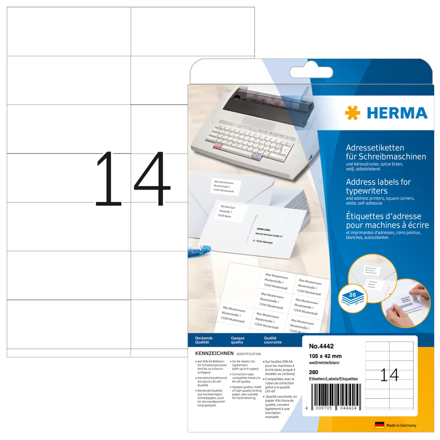 Adresetiketten voor schrijfmachines, A4, 105 x 42 mm, ppermanent hechtend