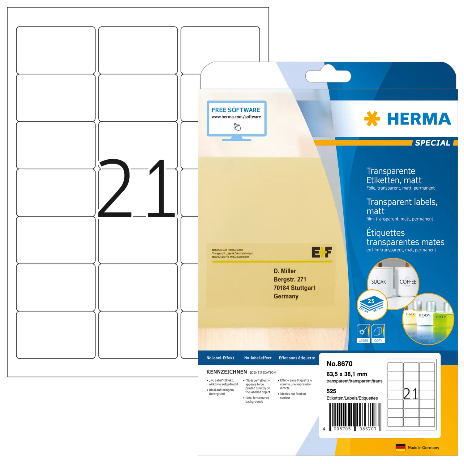 De transparante folie-etiketten (mat) zijn geschikt voor temperaturen tussen -20 °C en + 80 °C.