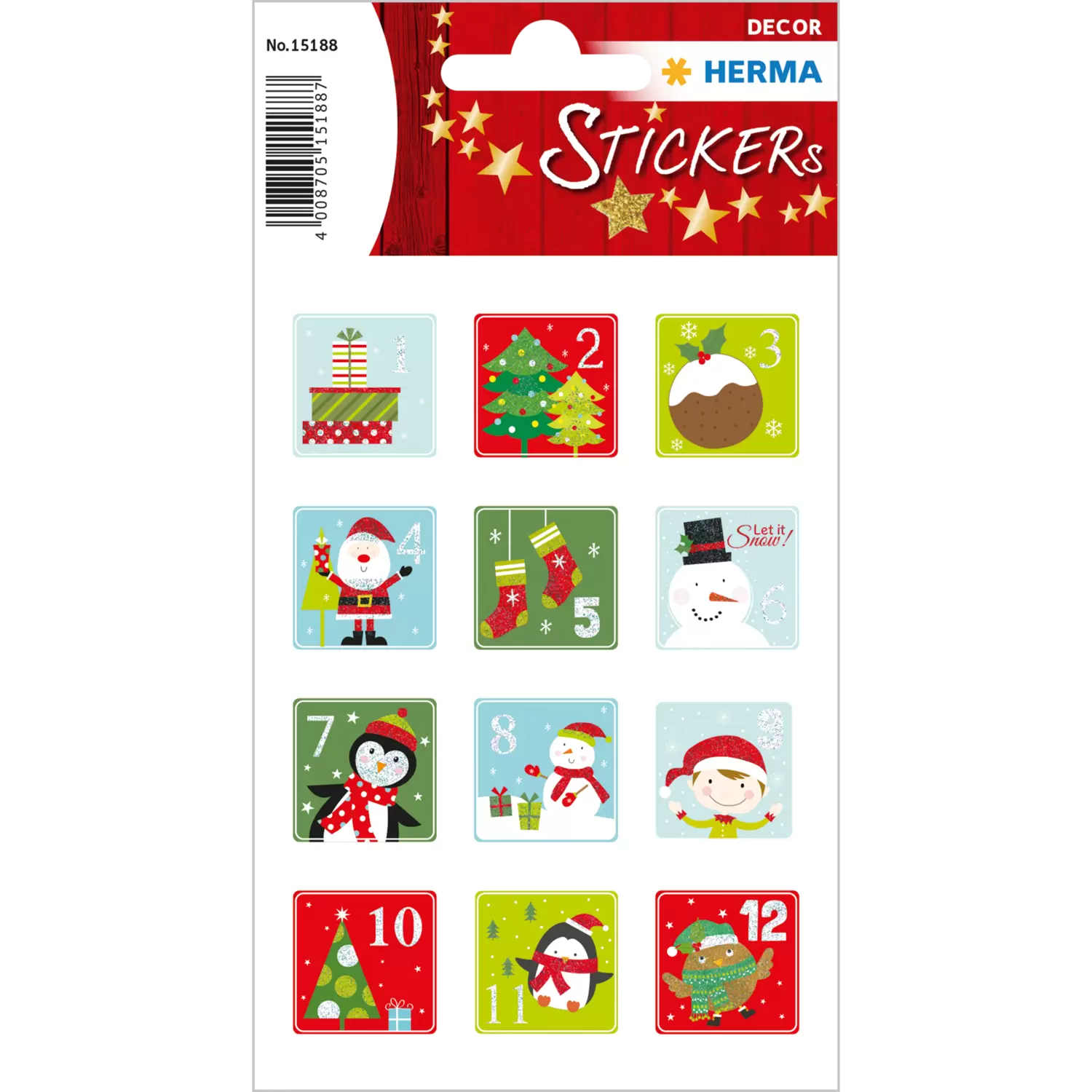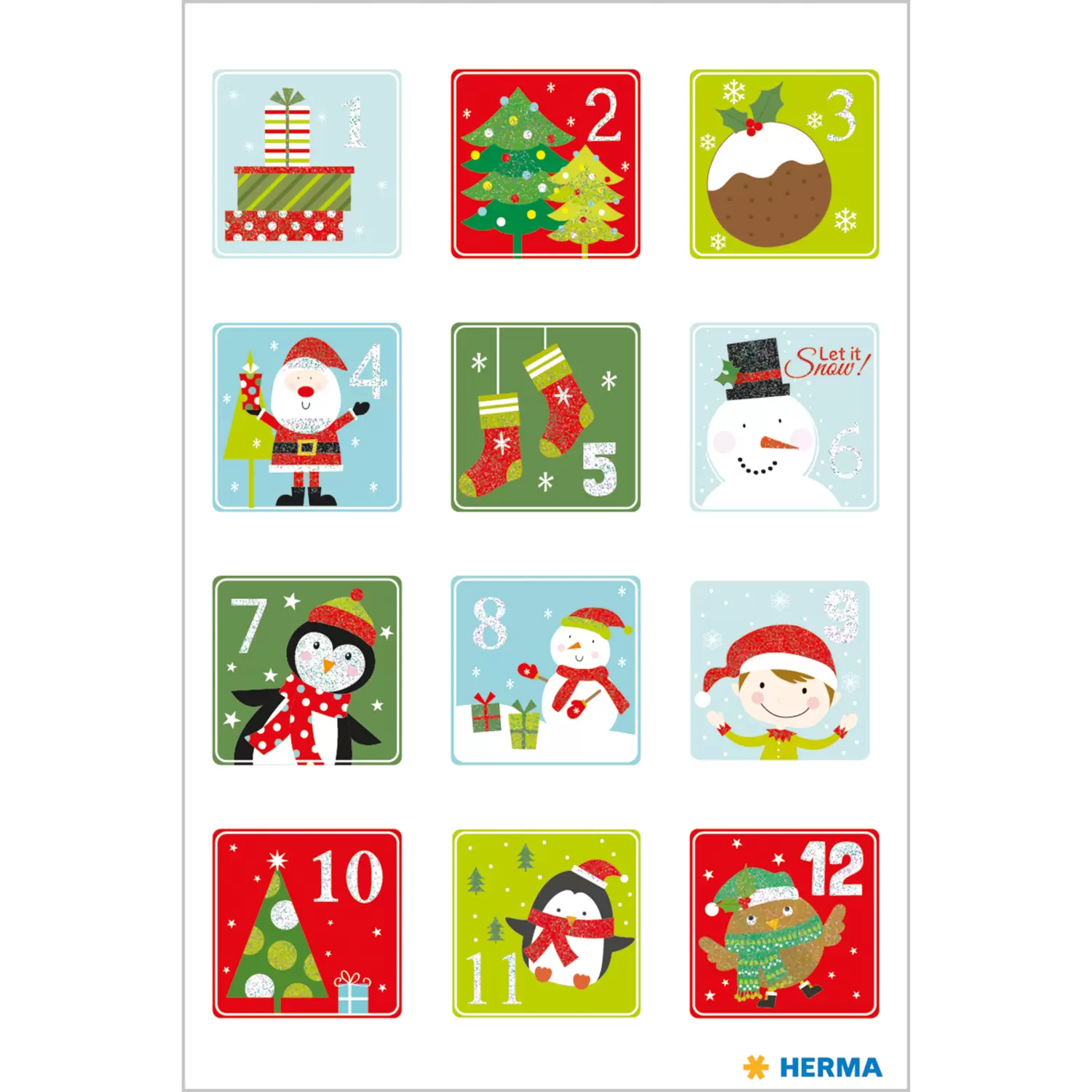 Prachtige glitterende papieren stickers met de cijfers 1 tot 24, liefdevol en in kerstsfeer ontworpen voor kinderen. Ideaal voor zelfgeknutselde adventskalenders en voor het versieren van cadeautjes en kerstpost. Perfect om echt in kerststemming te komen. De stickers zijn op papier van hoge kwaliteit gedrukt en afgewerkt met fijne glitters. Ze zijn gemakkelijk van het rugpapier te verwijderen en hechten goed en lang op bijna alle oppervlakken.
