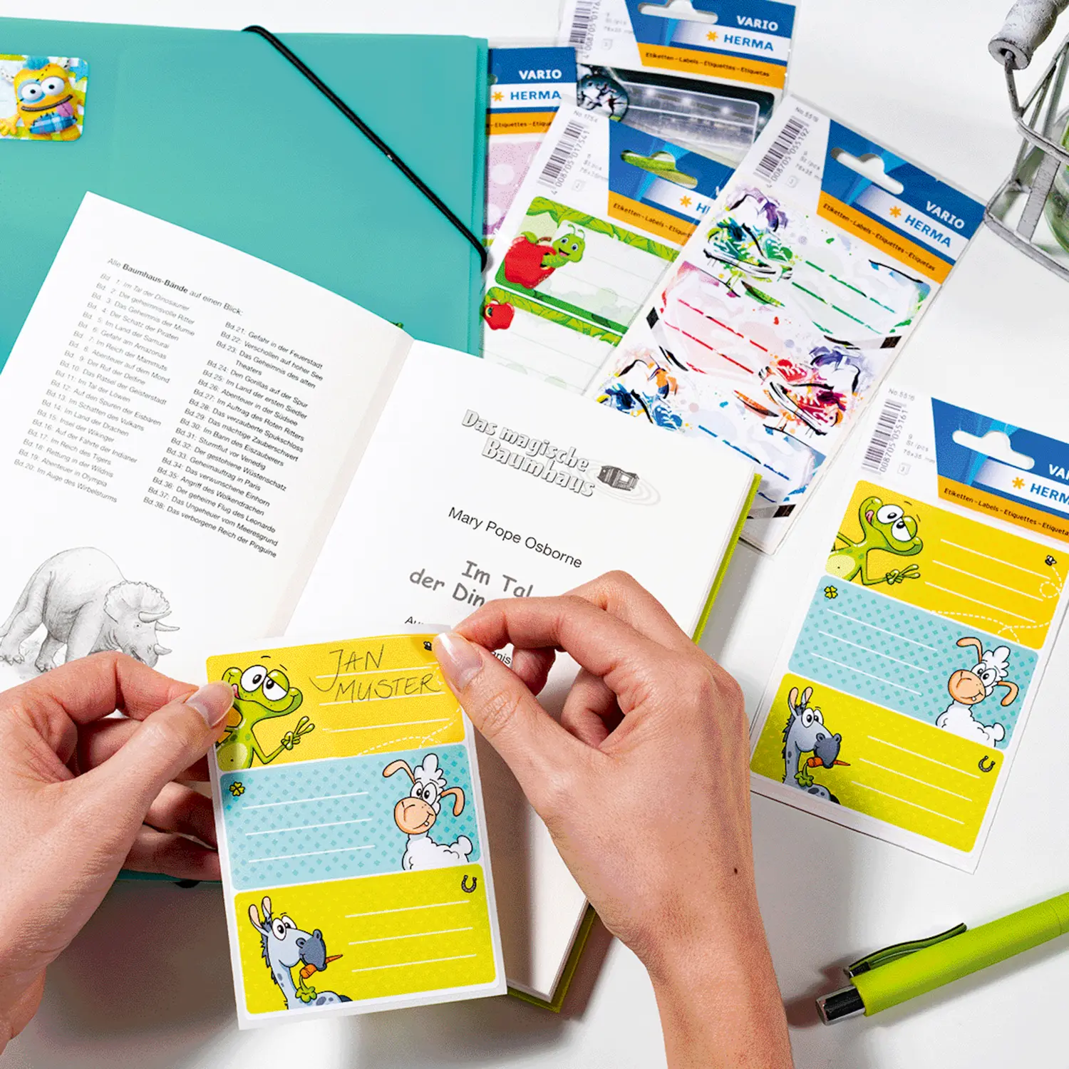 Met deze slimme en kleurrijke schooletiketten van beschrijfbaar papier van merkfabrikant HERMA is het markeren en labelen van boeken en notitieboekjes echt leuk. Met de naamstickers kan het kind duidelijk worden geïdentificeerd, ondanks het feit dat de meeste boekjes of boekomslagen binnen een klas identiek zijn. De vele verschillende motieven en ontwerpen komen overeen met de voorkeuren of hobby's van de leerlingen. De naamlabels zijn met name geschikt voor HERMA boekomslagen van kunststof of papier.