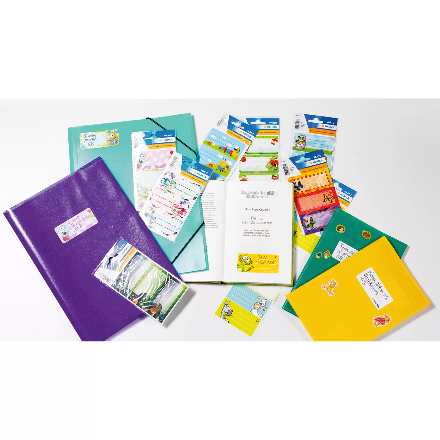 Met deze slimme en kleurrijke schooletiketten van beschrijfbaar papier van merkfabrikant HERMA is het markeren en labelen van boeken en notitieboekjes echt leuk. Met de naamstickers kan het kind duidelijk worden geïdentificeerd, ondanks het feit dat de meeste boekjes of boekomslagen binnen een klas identiek zijn. De vele verschillende motieven en ontwerpen komen overeen met de voorkeuren of hobby's van de leerlingen. De naamlabels zijn met name geschikt voor HERMA boekomslagen van kunststof of papier.