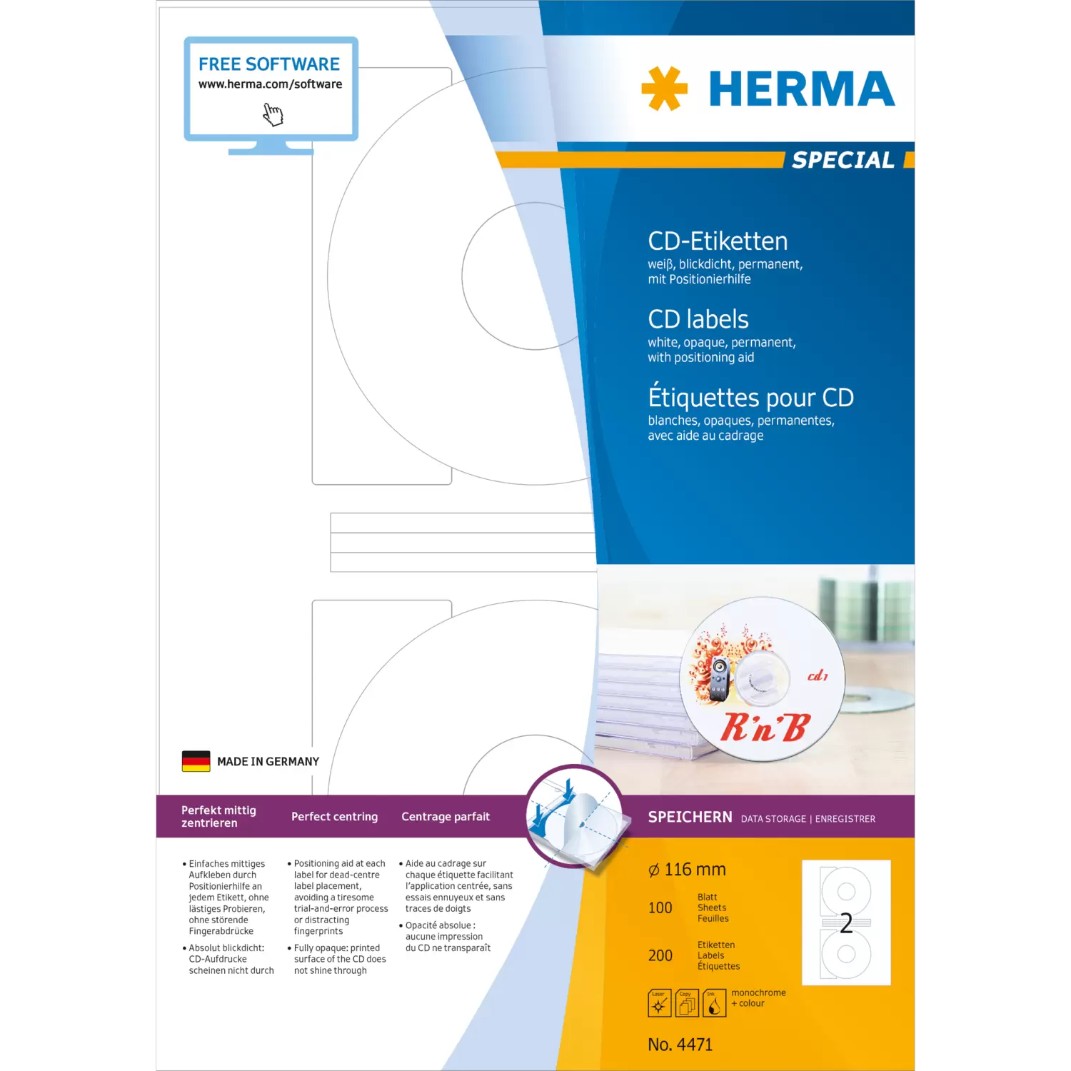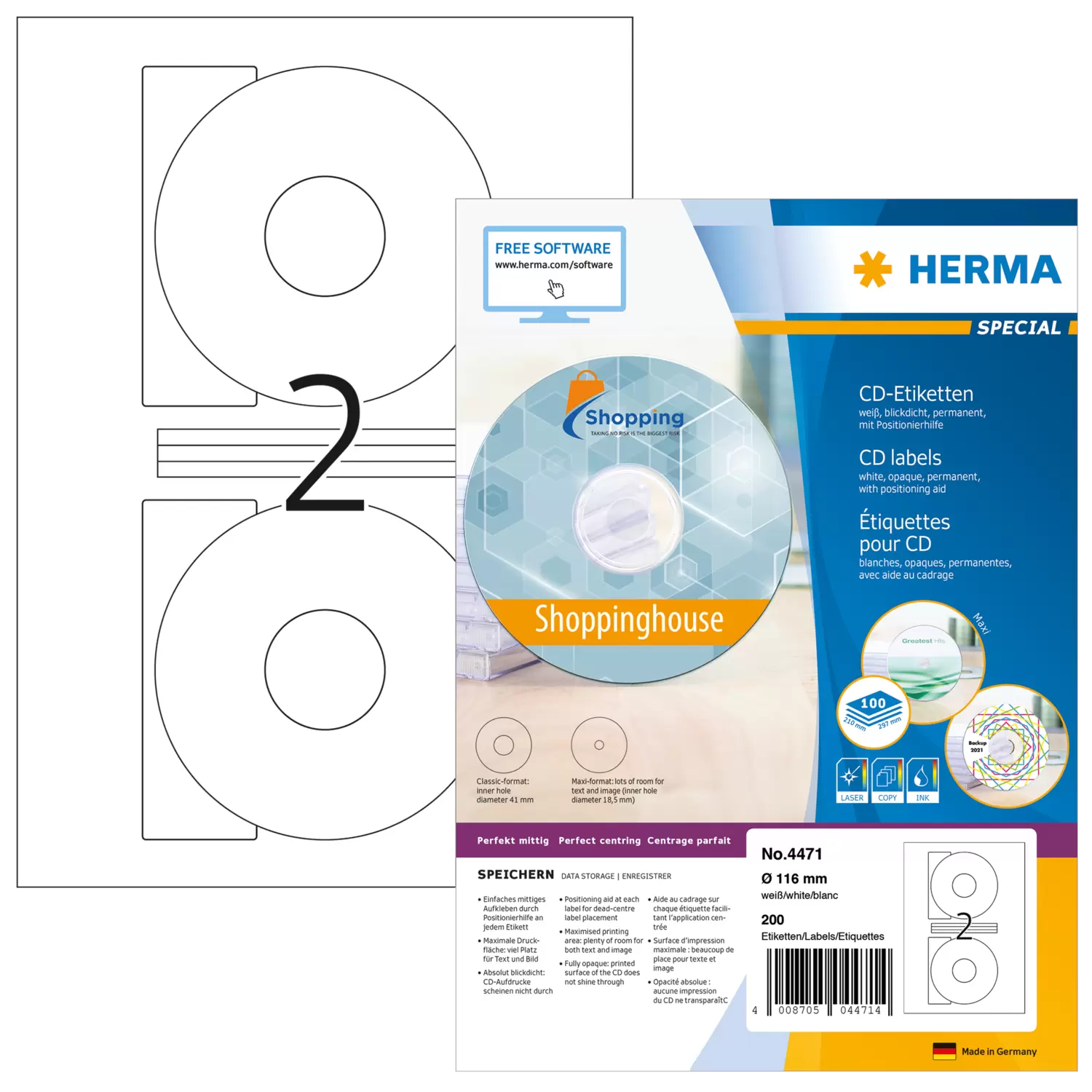 CD-etiketten Maxi, A4, Ø 116 mm, wit, ondoorzichtig, permanent hechtend
