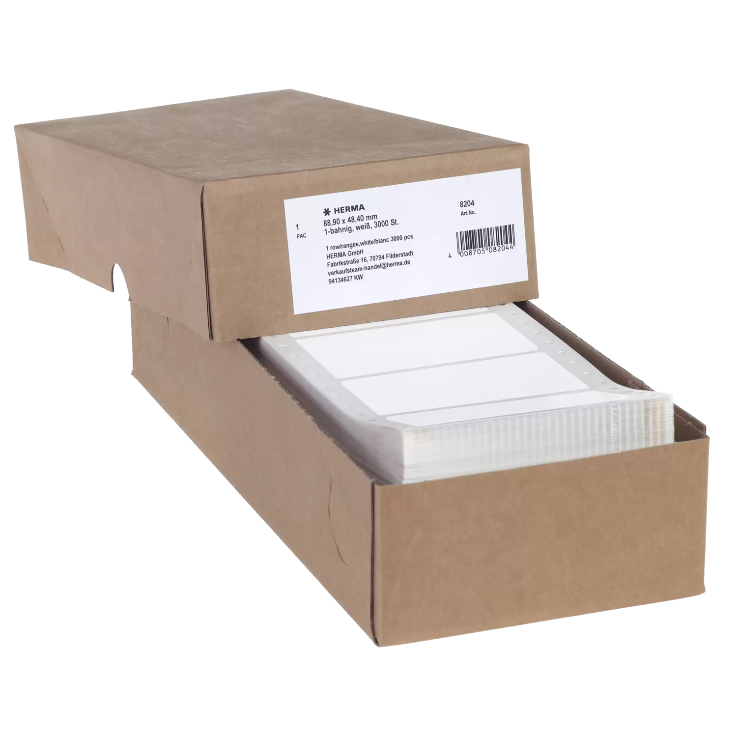 Computeretiketten, doorlopend, met pinfeedrand. In de beste kwaliteit: gegarandeerd doorlopend, zonder onderbreking. Storingsvrije doorloop, perfecte afdrukresultaten en vouwt na bedrukking altijd automatischweer op tot een keurige stapel. Hoogwaardig, houtvrij schrijfpapier, chloorvrij gebleekt, oplosmiddelvrije contactlijm. Witte etiketten met FSC® Mix Credit certificaat. Sterk hechtend, ook op kritische oppervlakken.