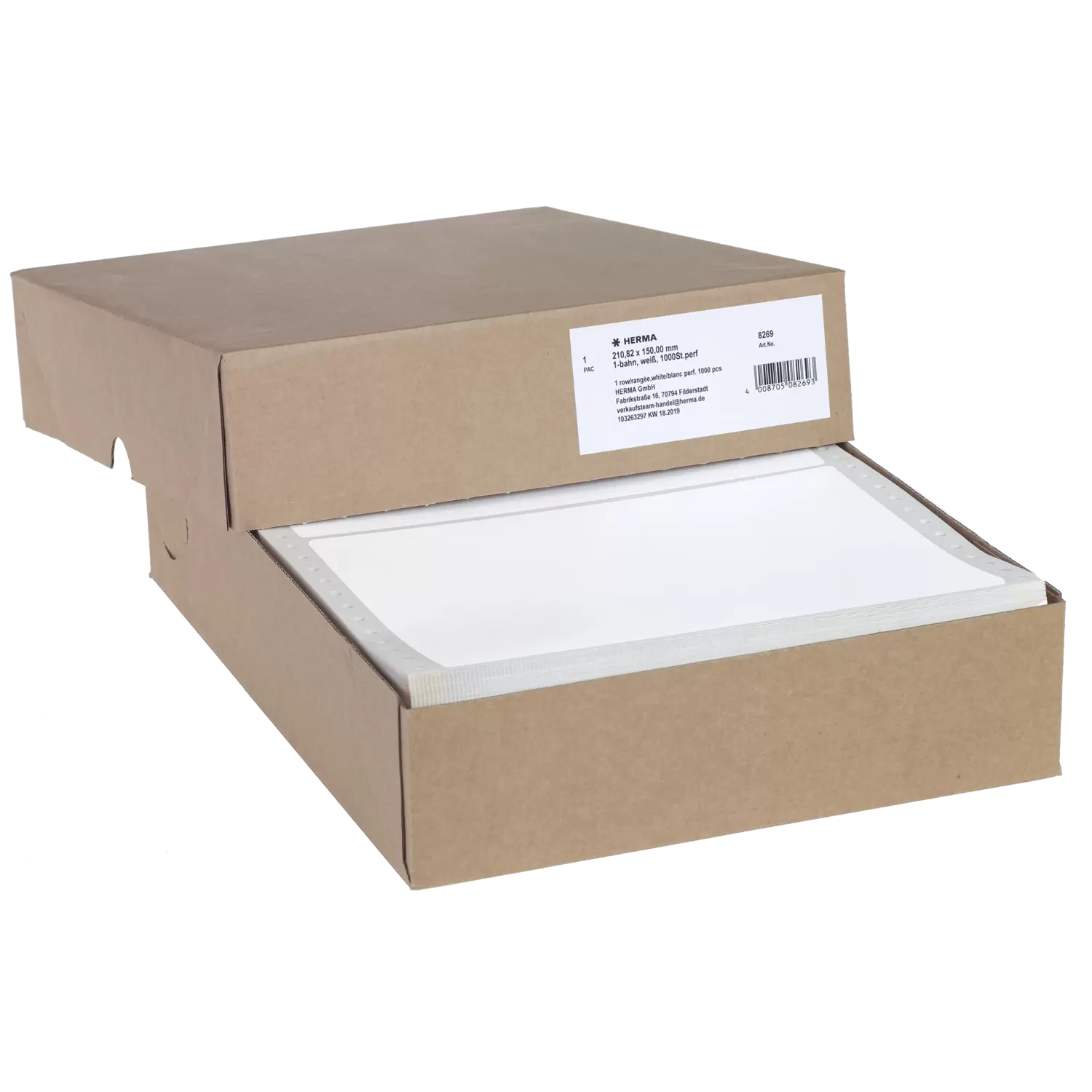 Computeretiketten doorlopend, 210,82 x 150,0 mm, 1-baans, wit, met perforatie, permanent hechtend
