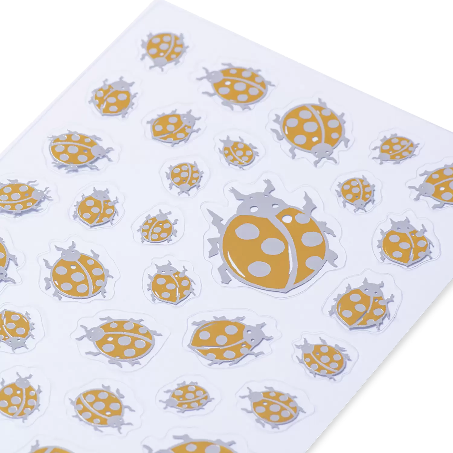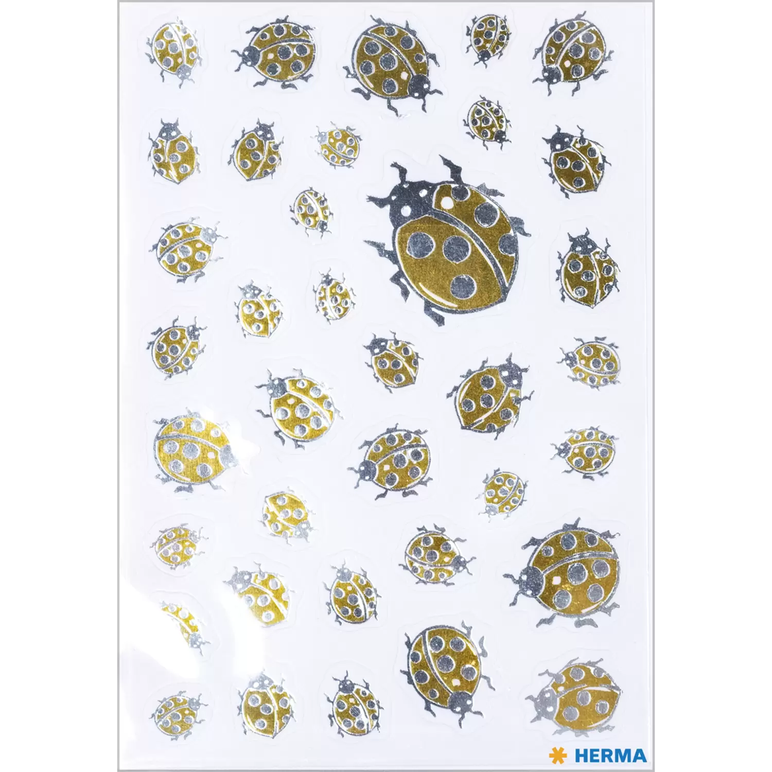 Voor verjaardagsuitnodigingen of voor het verfraaien van cadeaus: deze schattige stickers met geluksbrengende lieveheersbeestjes bestaan uit goud- en zilverfolies die eenvoudig van het rugpapier kunnen worden verwijderd en opgeplakt. Al naargelang creativiteit en smaak is er een oneindig aantal toepassingen voor het aanbrengen van de gelukskever-stickers. Vooral op gladde oppervlakken hechten de zelfklevende creative-stickers goed en ze kunnen ook op notitieboekjes, kaarten of brieven worden gebruikt. Verfraai met de gelukskever-stickers enveloppen, tafeldecoraties of cadeautjes. Geschikt voor kinderverjaardagen, bruiloften en vele andere leuke gelegenheden.