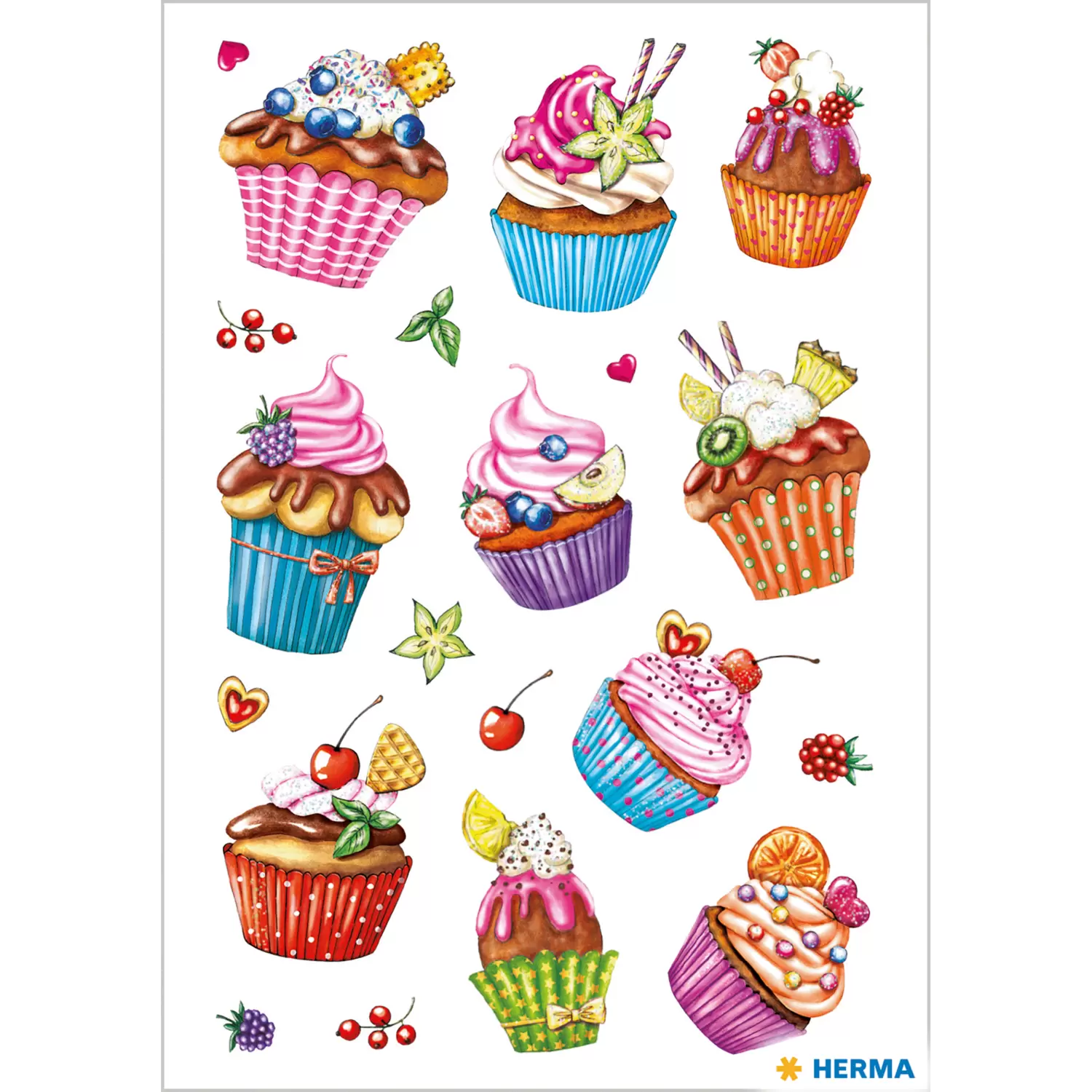 • De kleurrijke cupcakes nodigen meteen uit om te gaan bakken, fraai gestylede stickers met glittereffect