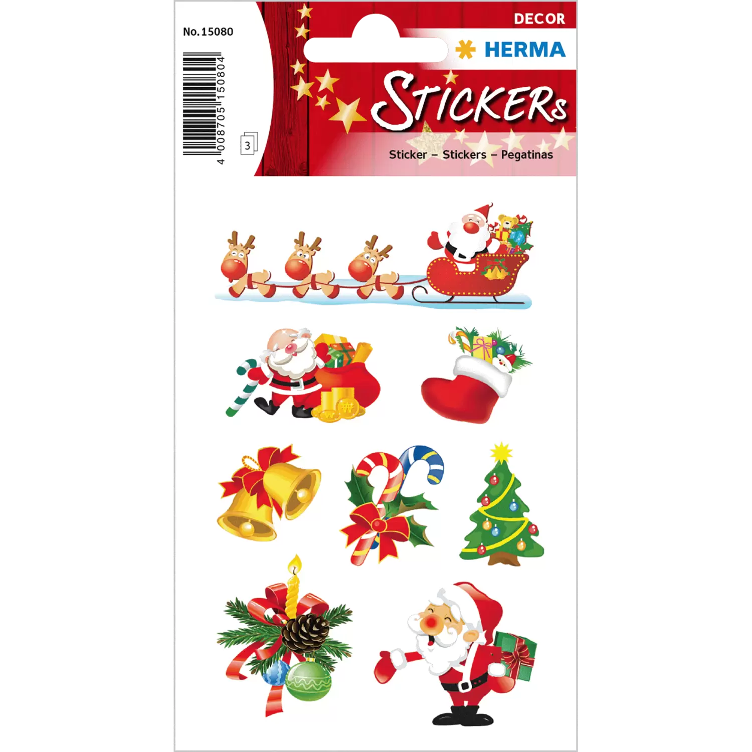 Zelfklevende decoratieve etiketten, bont bedrukt met Kerstmotieven. Voor het decoreren van geschenken, kaarten en brieven.