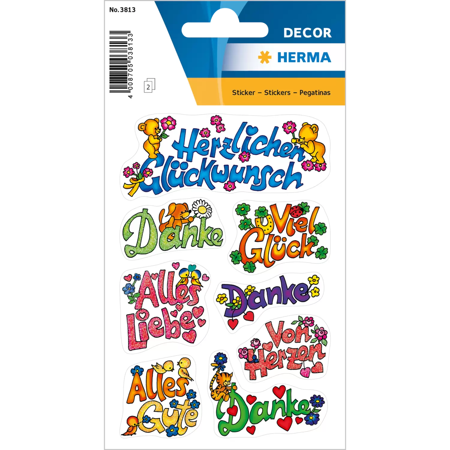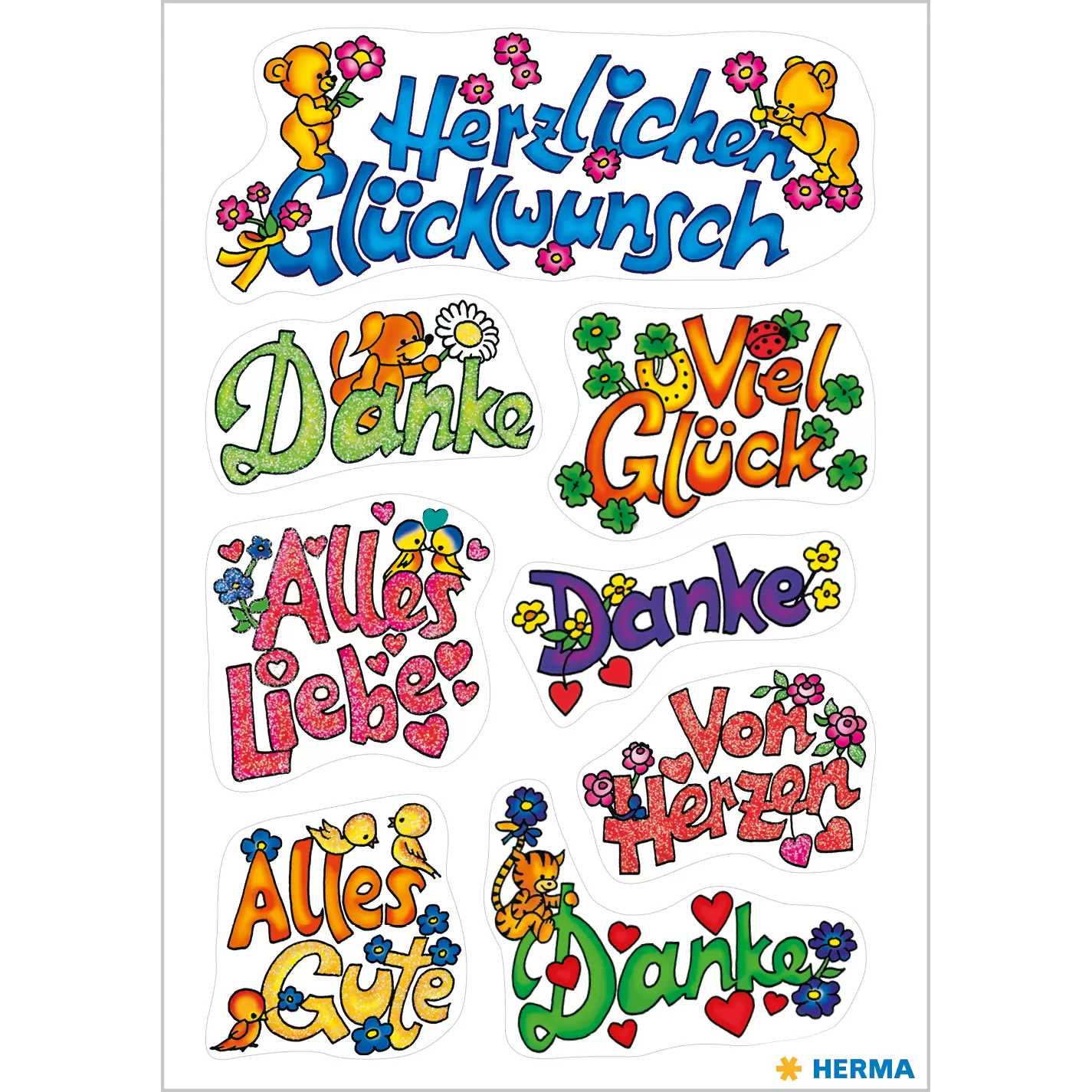 • Gelukwensen voor de familie en vrienden, stickers met fijn glittereffect