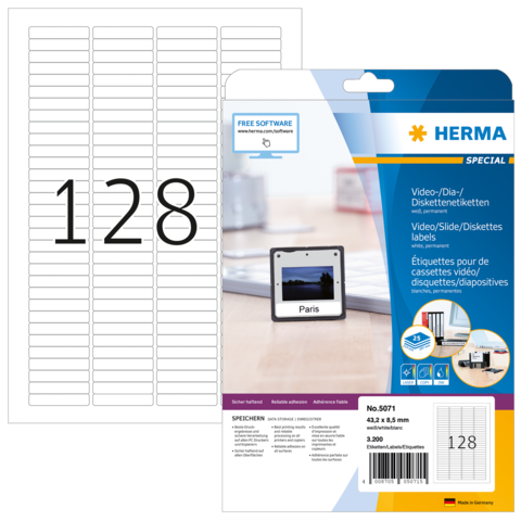 Dia-etiketten, A4, 43,2 x 8,5 mm, wit, permanent hechtend