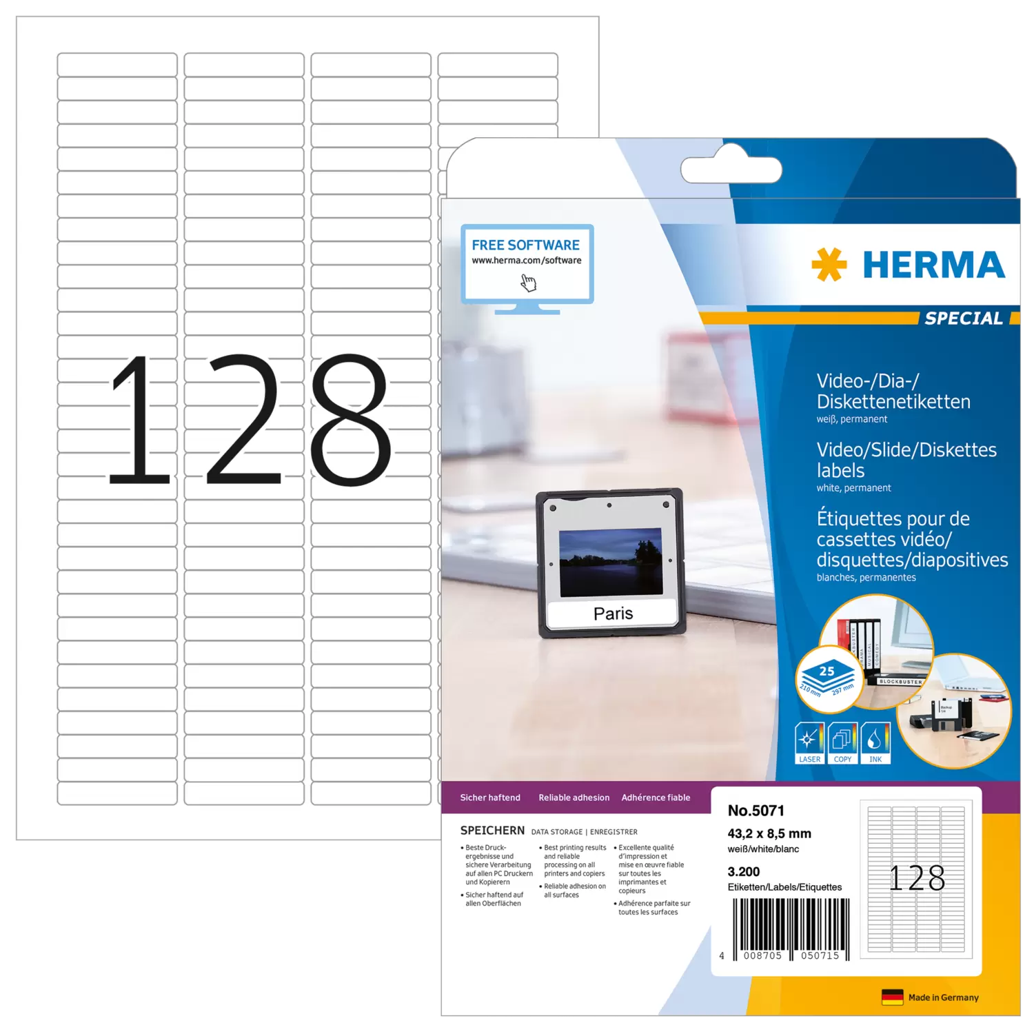 Dia-etiketten, A4, 43,2 x 8,5 mm, wit, permanent hechtend