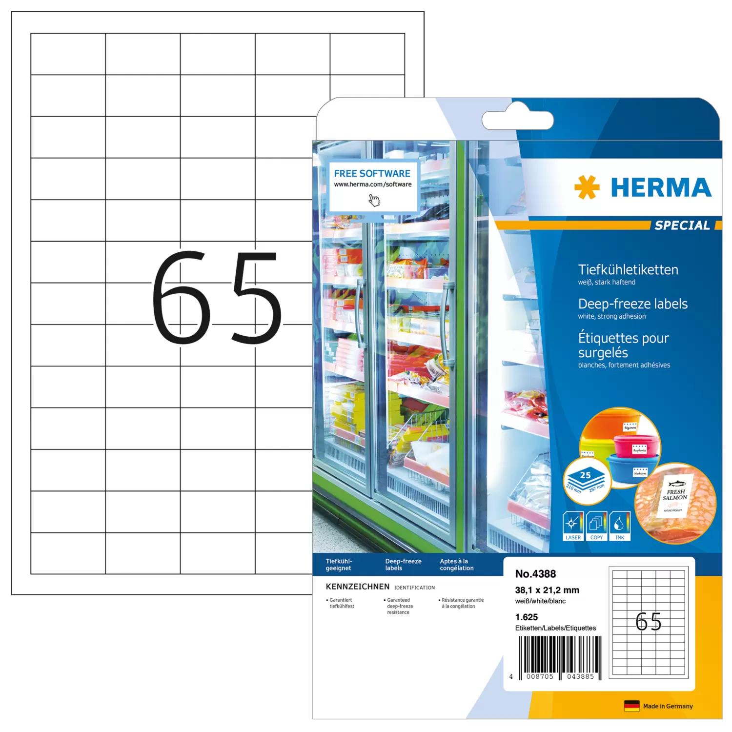 Diepvriesetiketten, A4, 38,1 x 21,2 mm, wit, diepvriesbestendig