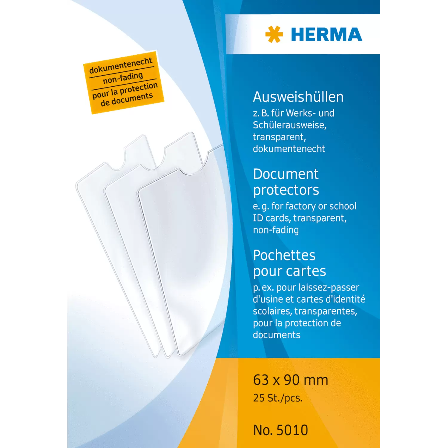Documenten, ID-kaartjes en bankpasjes, creditcards en andere belangrijke pasjes moeten goed beschermd en veilig worden bewaard. Het HERMA insteekhoesje van transparante polypropyleen-folie is optimaal geschikt voor werkpasjes en leerlingenpasjes & meer in het formaat 63 x 90 mm. Het hoesje is zeer duurzaam en robuust, documentecht, scheurvast, geurvrij en beschermt tegen vocht, vuil en slijtage, ook onderweg in de portemonnee, in de handtas of broekzak. Dat is HERMA-kwaliteit 'Made in Germany'.