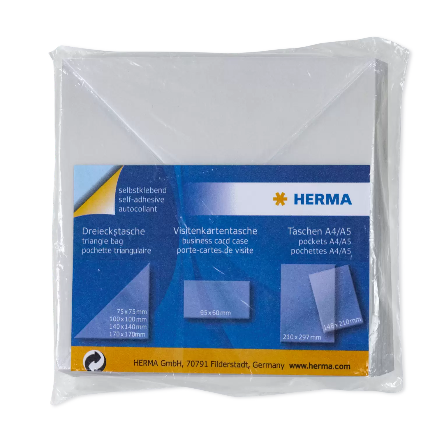 Het praktische extra vak om in albums, ordners en ringmappen, offerte- en presentatiemappen te plakken: de transparante, zelfklevende insteekhoeken van HERMA. De insteekdriehoeken, ook bekend als plakhoekjes of uitleenkaartvakjes, zijn gemaakt van glasheldere polypropyleenfolie, hebben een rugbreedte van 7,5 cm en zijn daarmee ideaal voor kleinere documenten als visitekaartjes of flyers, brochures en kleinformaat overzichtsbladen. De insteekdriehoeken zijn gemakkelijk aan te brengen, zelfklevend en hechten goed op gladde oppervlakken. Zo zijn documenten die vaak worden gebruikt, zoals kalenders, roosters of to-do-lijstjes, maar ook visitekaartjes of brochures voor zakelijke afspraken, altijd onder handbereik. Gewoon het rugpapier verwijderen, de insteekdriehoek op de gewenste plaats plakken, de papieren erin steken en een nuttig gebruik maken van de tot dan toe ongebruikte plek. Clever en praktisch.