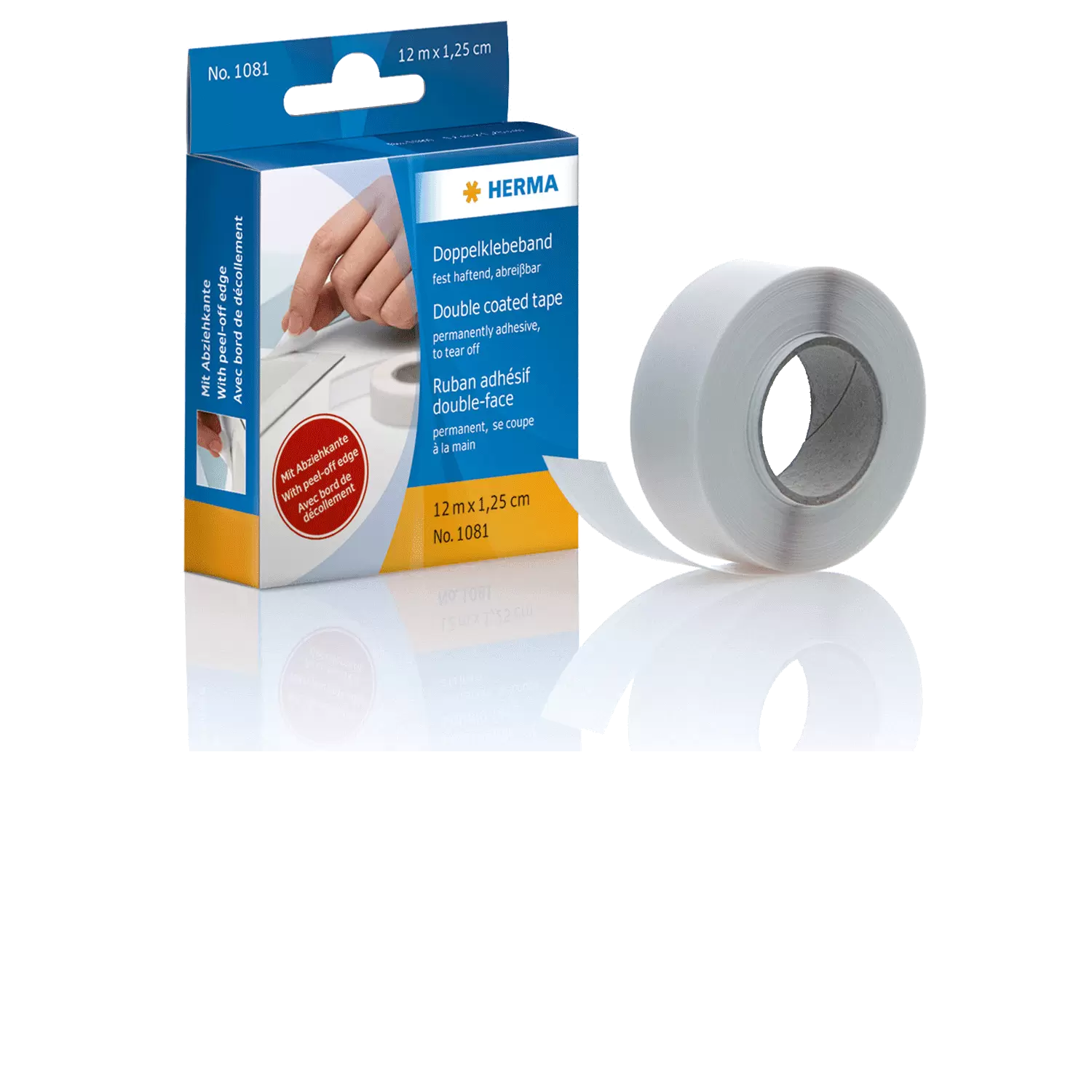 Dubbelzijdig tape, vast hechtend, kartonnen display, gombreedte 12 mm, 12 m