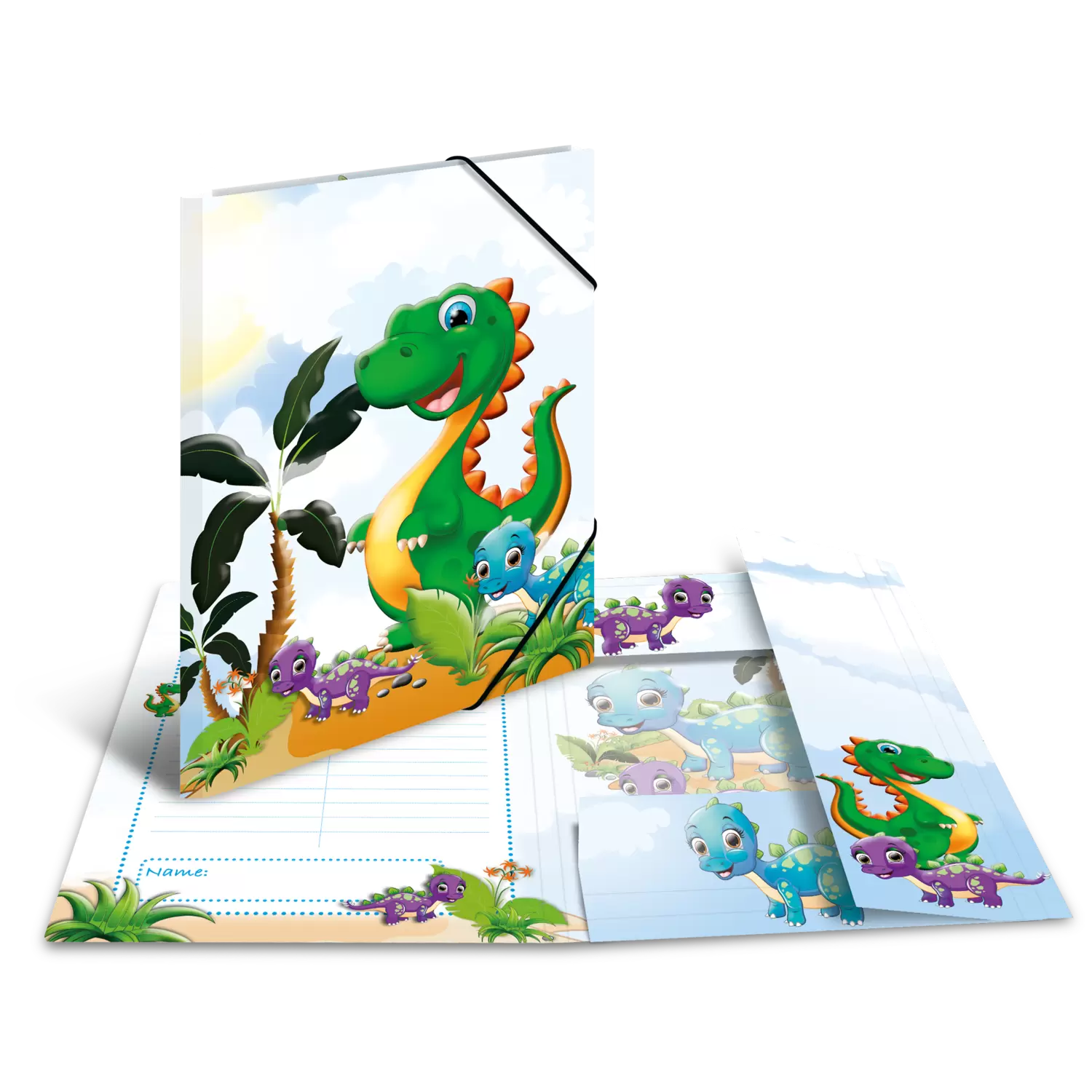 De vrolijke dino's doen het in het knutseluurtje van de crèche en op school vast en zeker erg goed. Deze HERMA-opbergmap is vooral bij echte dino-fans zeer geliefd en is dankzij het formaat en de uitvoering ervan uitstekend geschikt voor een groot aantal verschillende kunstwerkjes tot en met het formaat DIN A3. De hoekspannermap is bij meisjes én jongens in de kleuterleeftijd even geliefd. Daarbij werken het avontuurlijke motief, het kleurige design en ook het register met het naamveld binnenin de map als blikvangers. De DIN A3-tekenmap, gemaakt van hoogwaardig karton, is gemakkelijk afwasbaar en schoon te maken. Hij is bovendien zeer slijtvast, past in elke tas of kan om kleine stukjes meegenomen te worden eenvoudig onder de arm worden geklemd. Aan de beide hoeken van de map bevinden zich twee elastieken spanners, die ervoor zorgen dat de papieren en blaadjes goed bij elkaar worden gehouden. De drie geïntegreerde binnenflappen met print bieden eveneens bescherming tegen vies worden buiten en geven de inhoud van de map stevigheid. Deze verzamelmap helpt orde in de papierbende te scheppen, losse blaadjes te bundelen en ze veilig te bewaren. Zo blijft de kinderkamer opgeruimd. Als dit ontwerp u bevalt, is dezelfde verzamelmap ook verkrijgbaar in DIN A4.