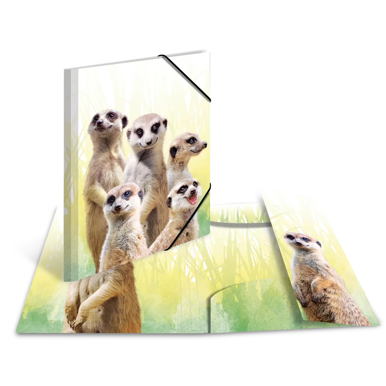 • Verzamelmap, design-serie 'exotische dieren', motief stokstaartjes: wakker, schattige teamworkers