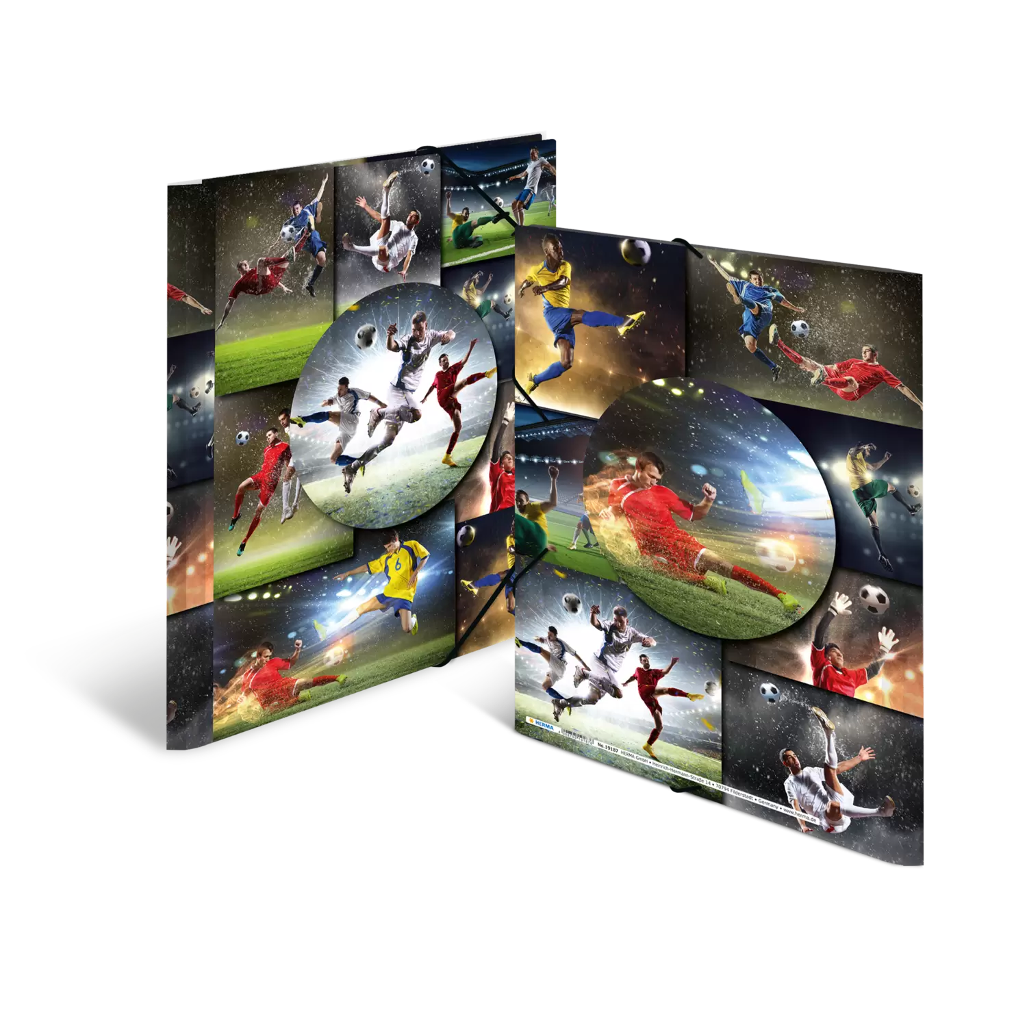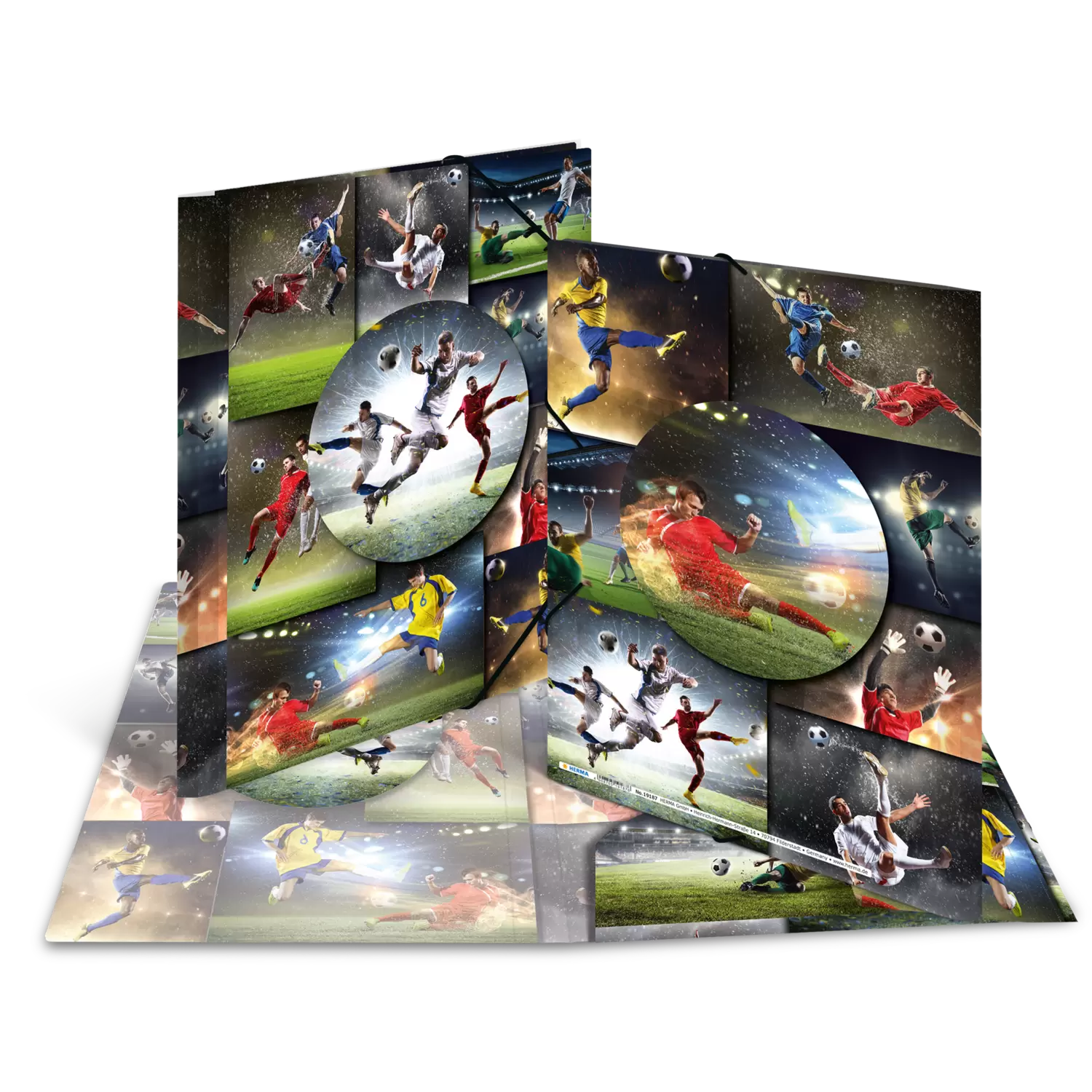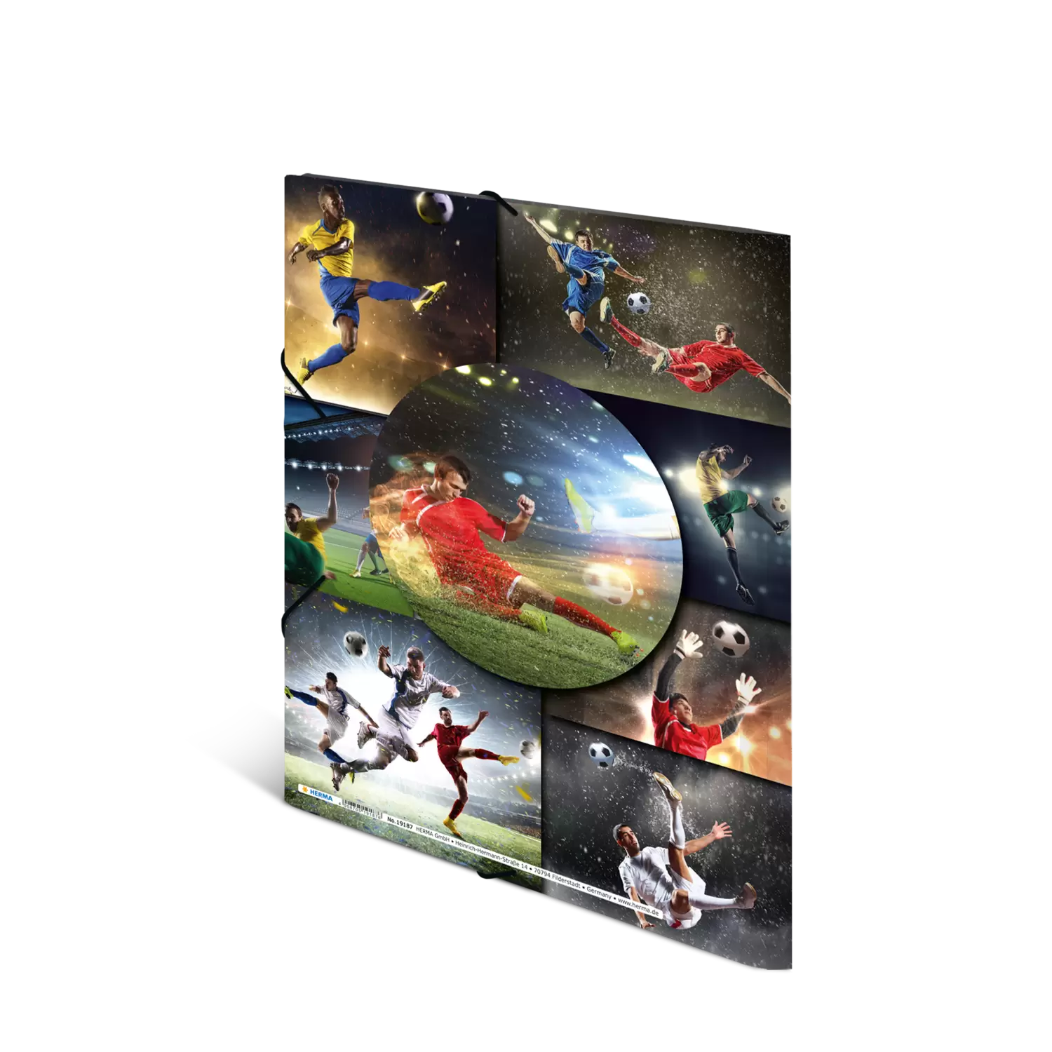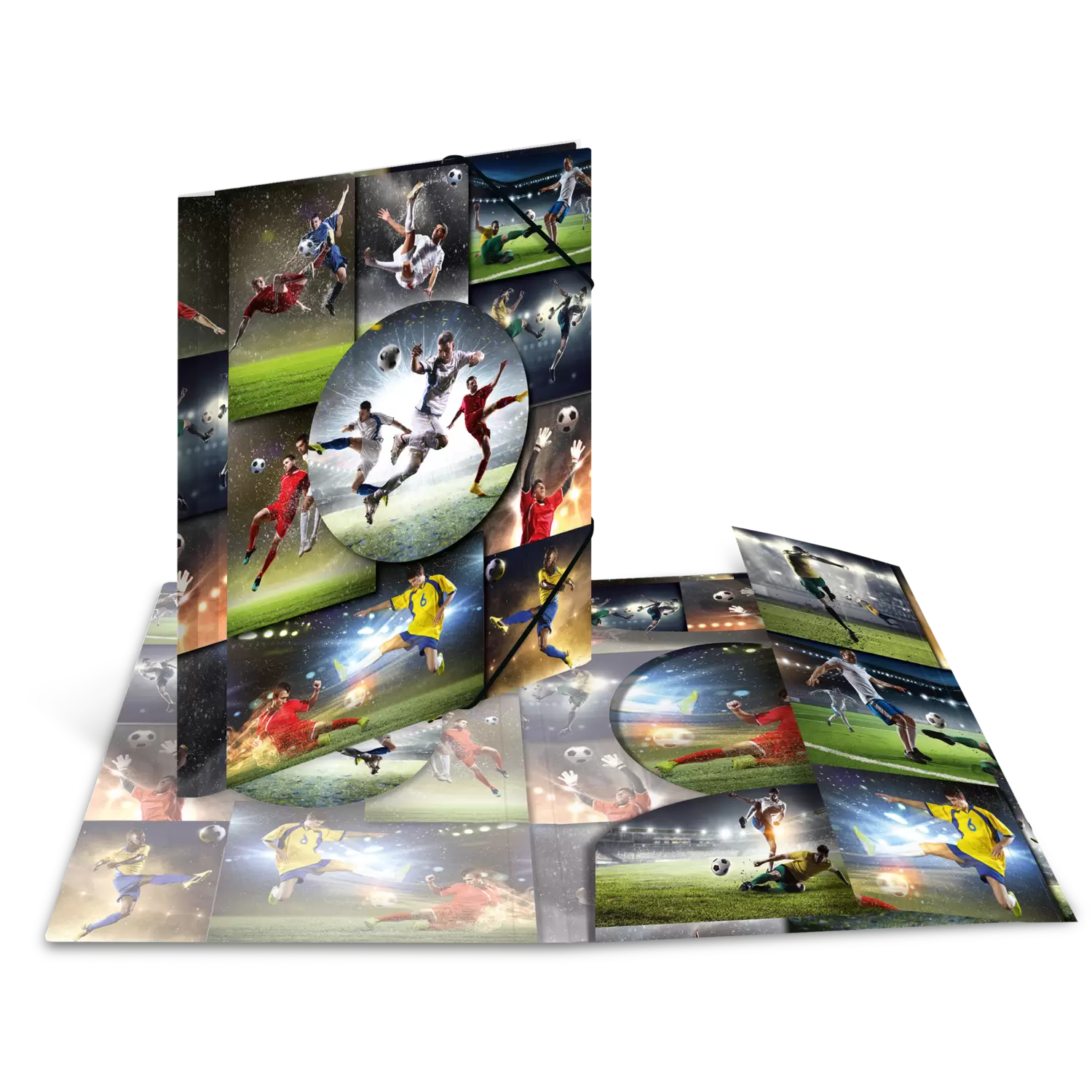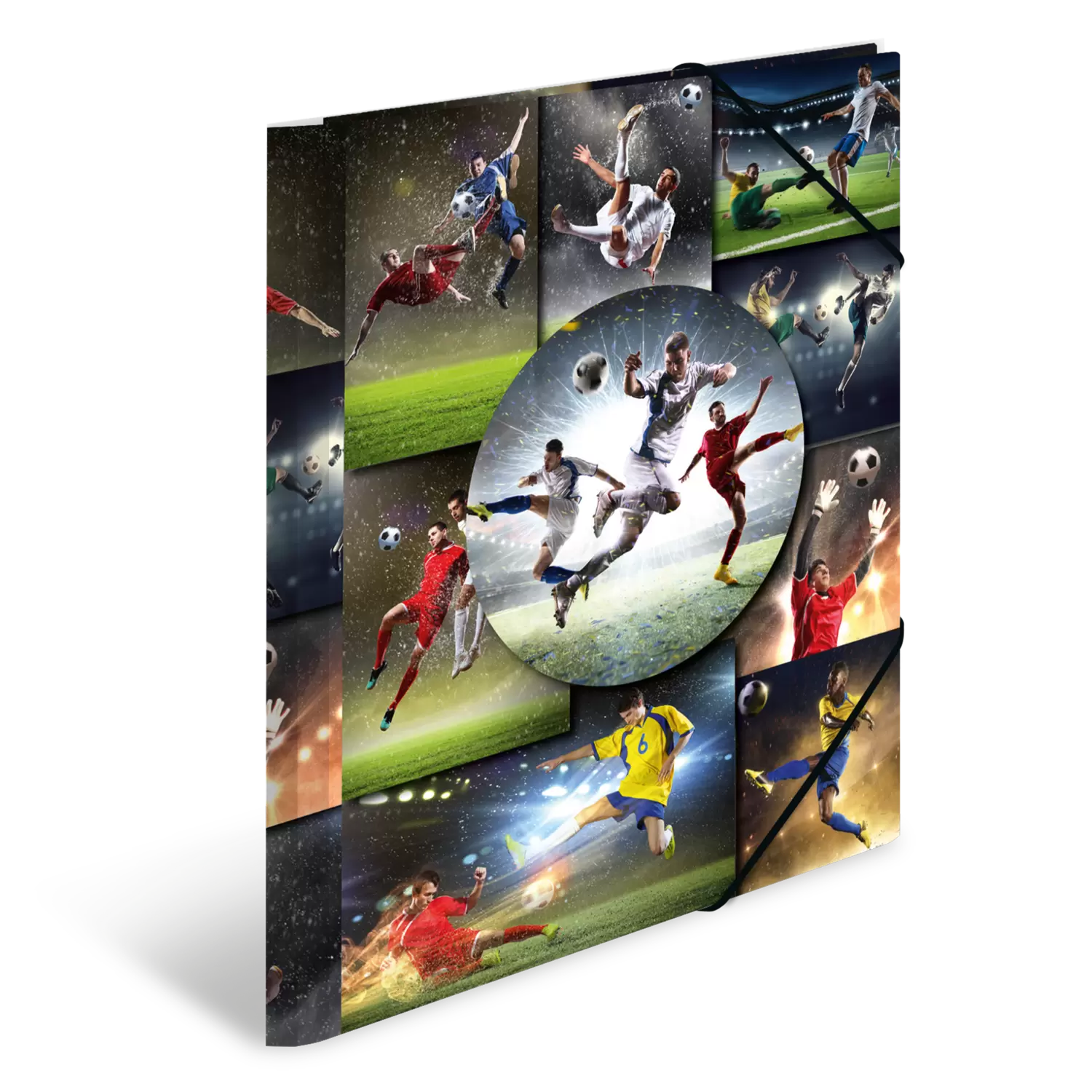 Rondom sportief de verzamelmap met elastieken band en inslagflappen in voetbaldesign. Gemaakt van stabiel polypropyleen in het formaat A4. Ideaal voor het bewaren van losse paperassen