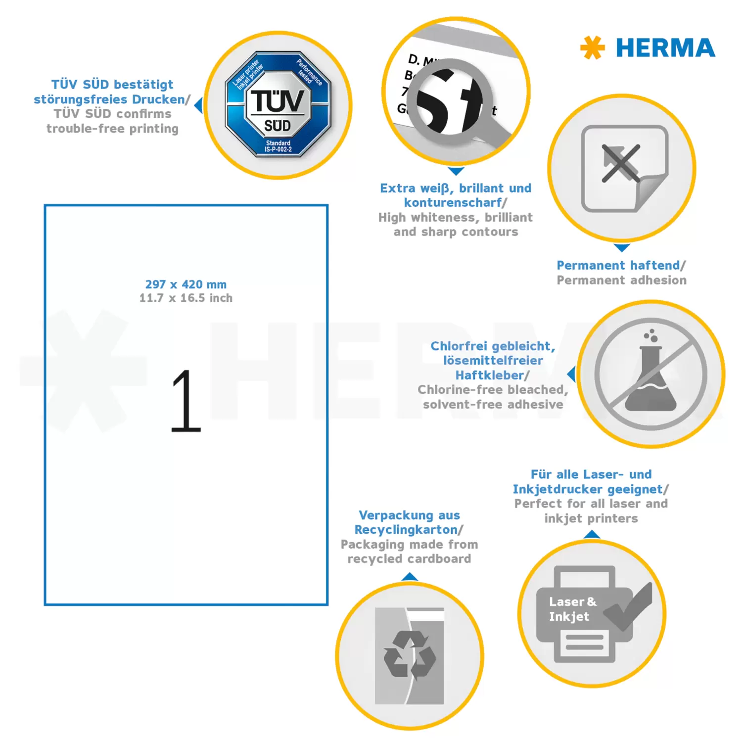 PREMIUM etiketten A3, 297 x 420 mm, wit, permanent hechtend