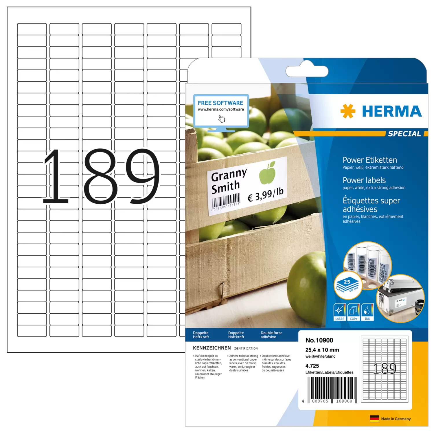 Power-etiketten, sterk hechtend, A4, 25,4 x 10 mm, wit, van papier