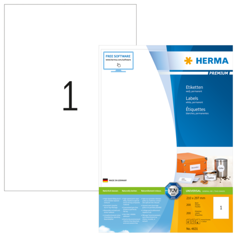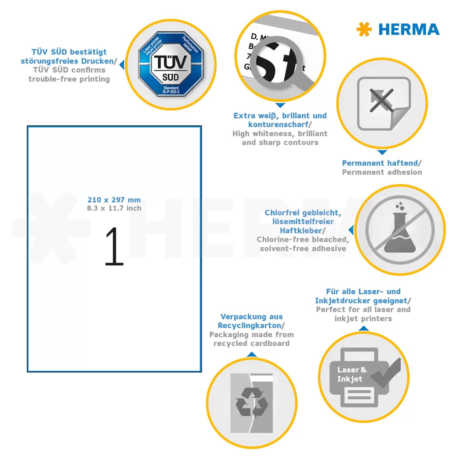 PREMIUM etiketten, A4, 210 x 297 mm, wit, permanent hechtend