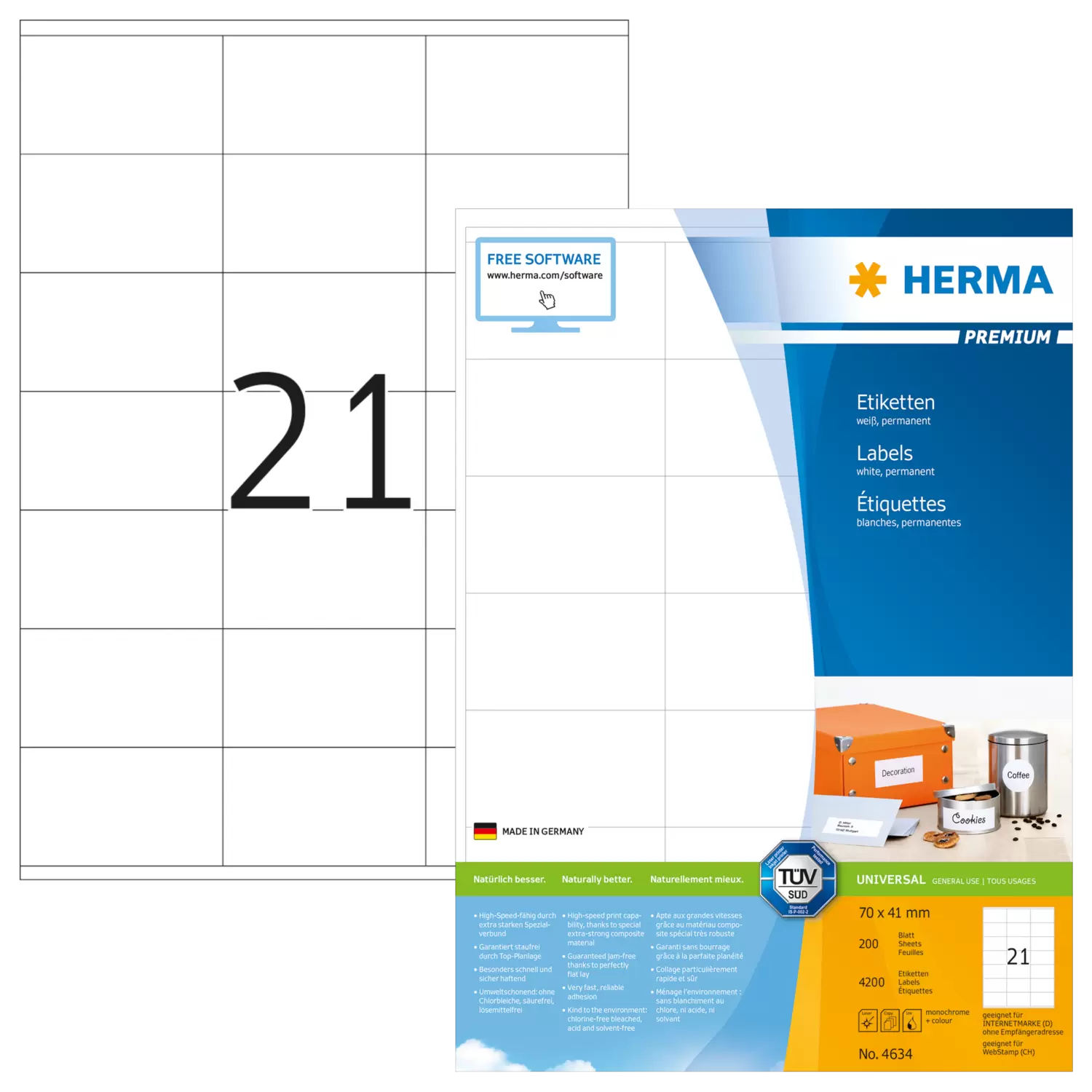 PREMIUM etiketten, A4, 70 x 41 mm, wit, permanent hechtend