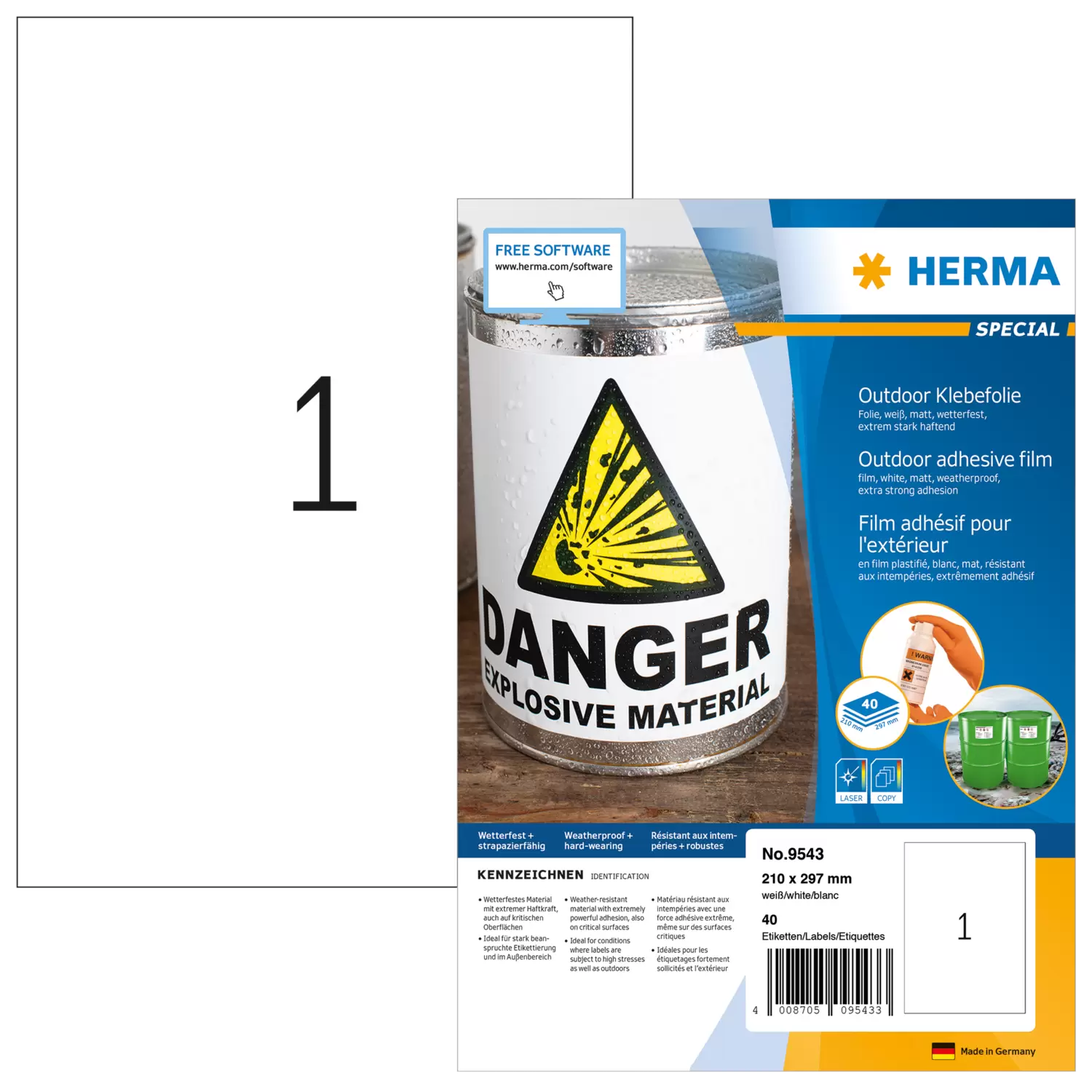 Weervaste outdoor-folie-etiketten, A4, 210 x 297 mm, wit, extreem sterk hechtend, elastisch