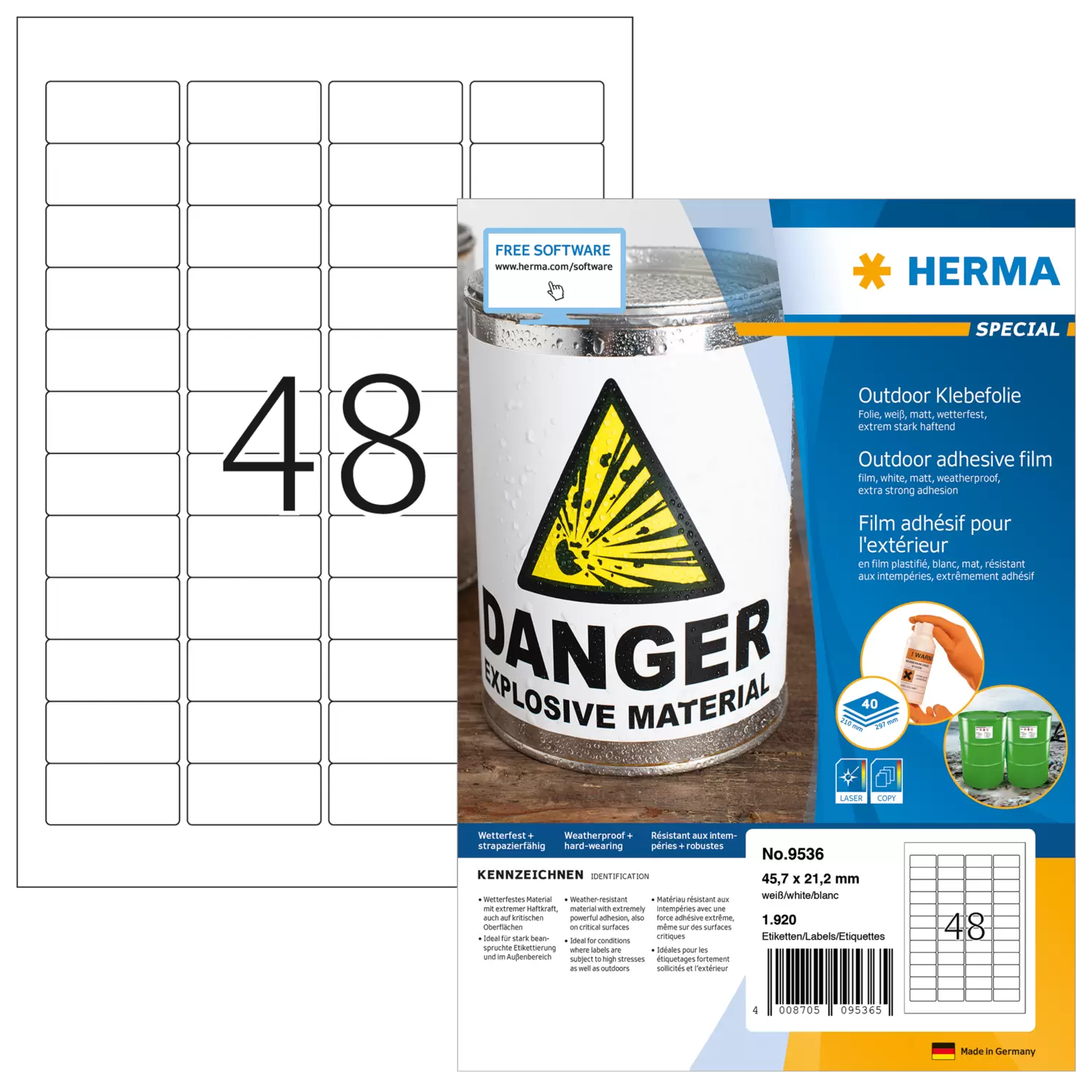 Weervaste outdoor-folie-etiketten, A4, 45,7 x 21,2 mm, wit, extreem sterk hechtend, elastisch