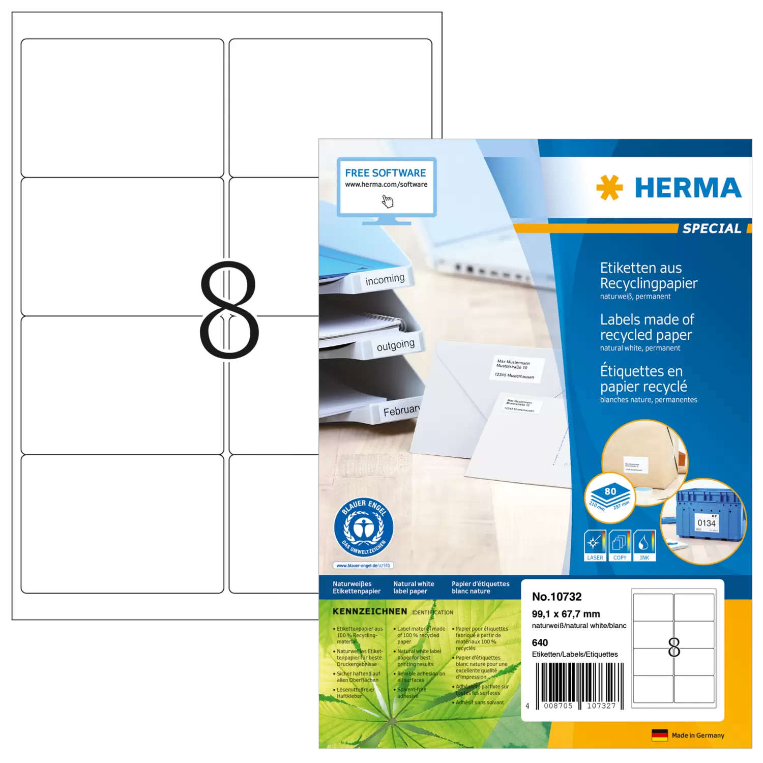 Recycling-etiketten zijn in tegenstelling tot andere etiketten voor 100% gemaakt van gerecycled papier en zijn onderscheiden met het milieukeurmerk 'Der Blaue Engel'. Bovendien is de verpakking van de etiketten gemaakt van gerecycled karton.