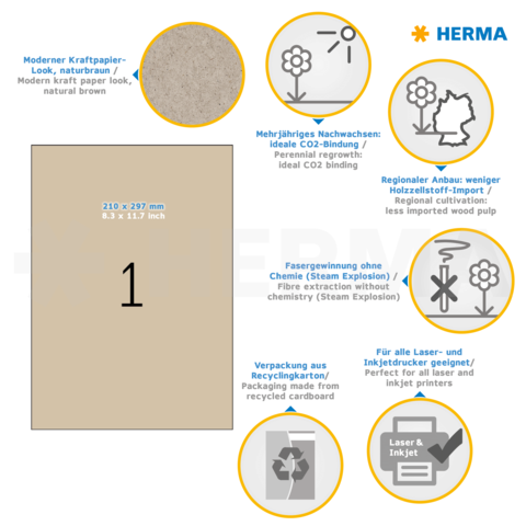Etiketten van silphie-papier, A4, 210 x 297 mm, naturel bruin, permanent hechtend
