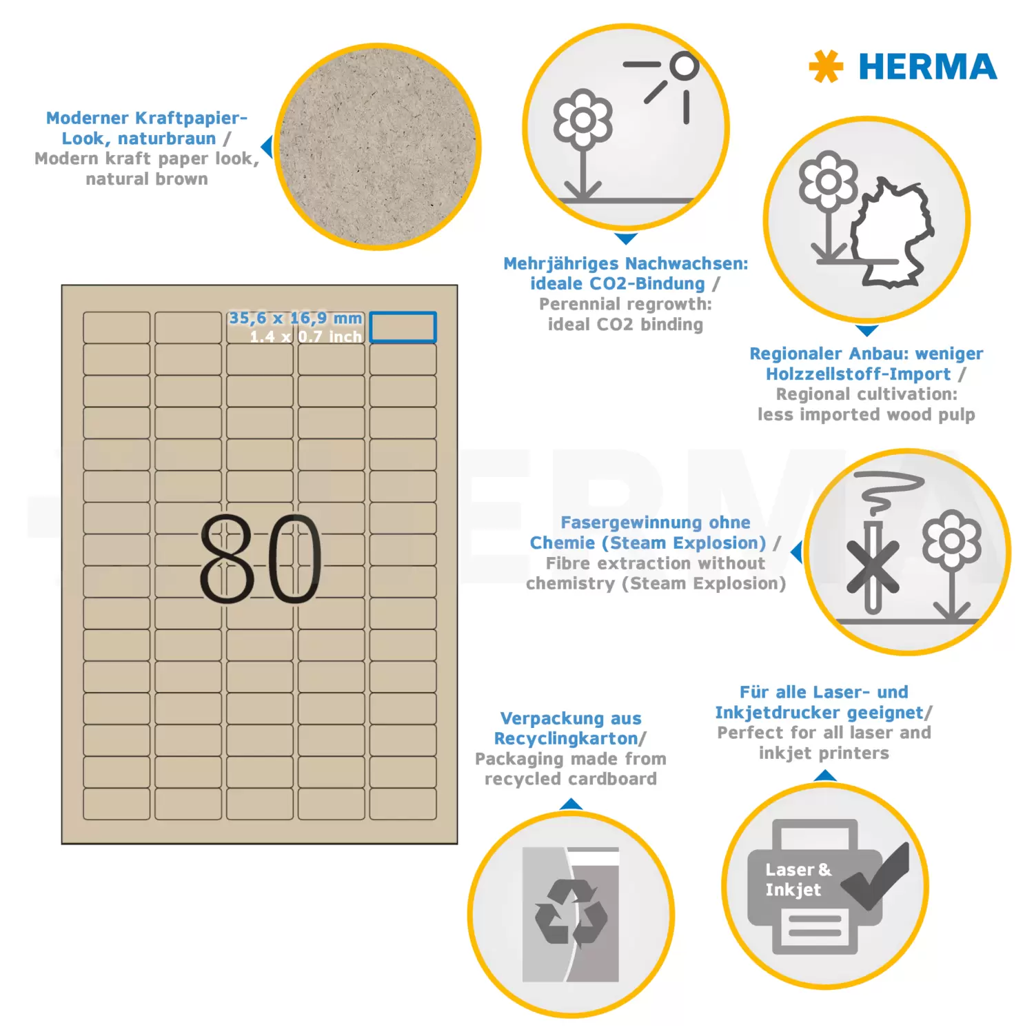 Etiketten van silphie-papier, A4, 35,6 x 16,9 mm, naturel bruin, permanent hechtend