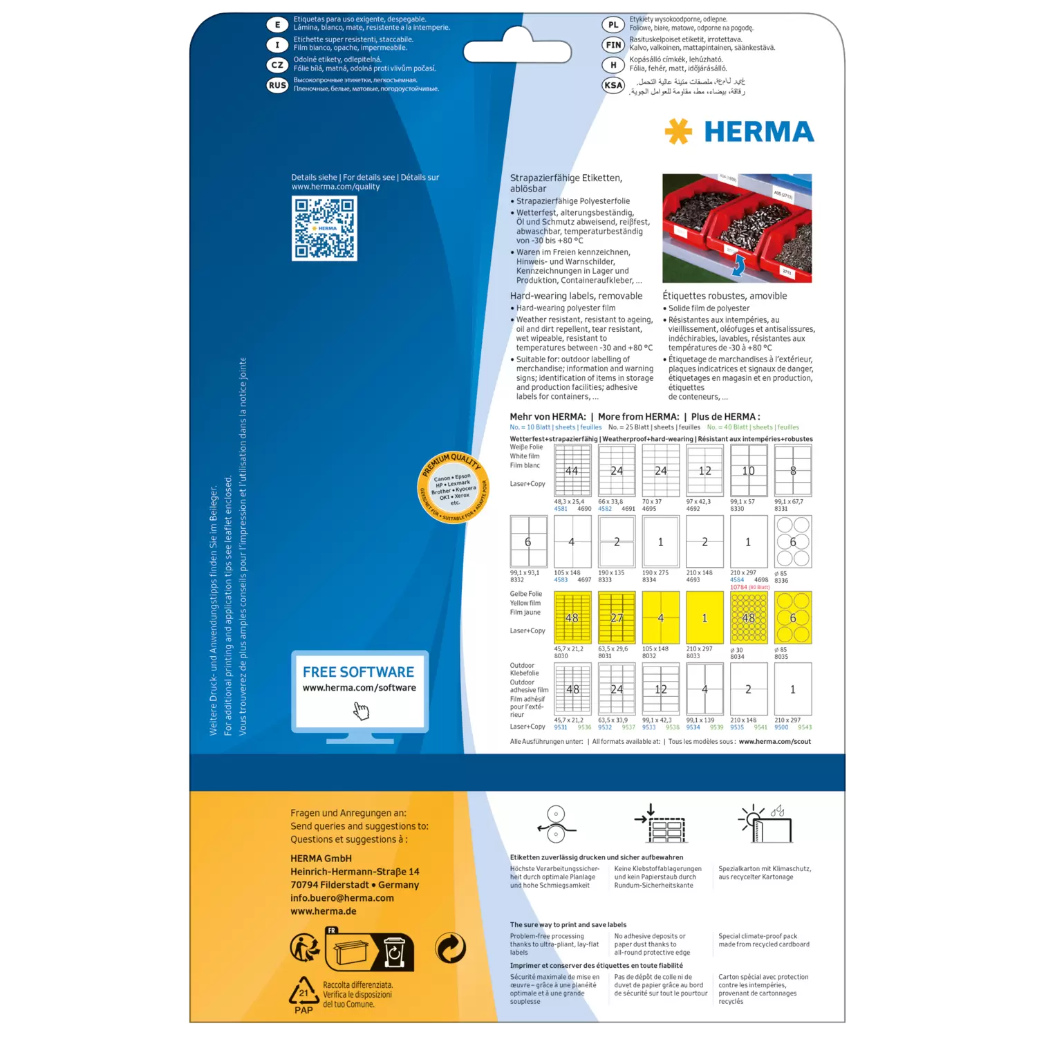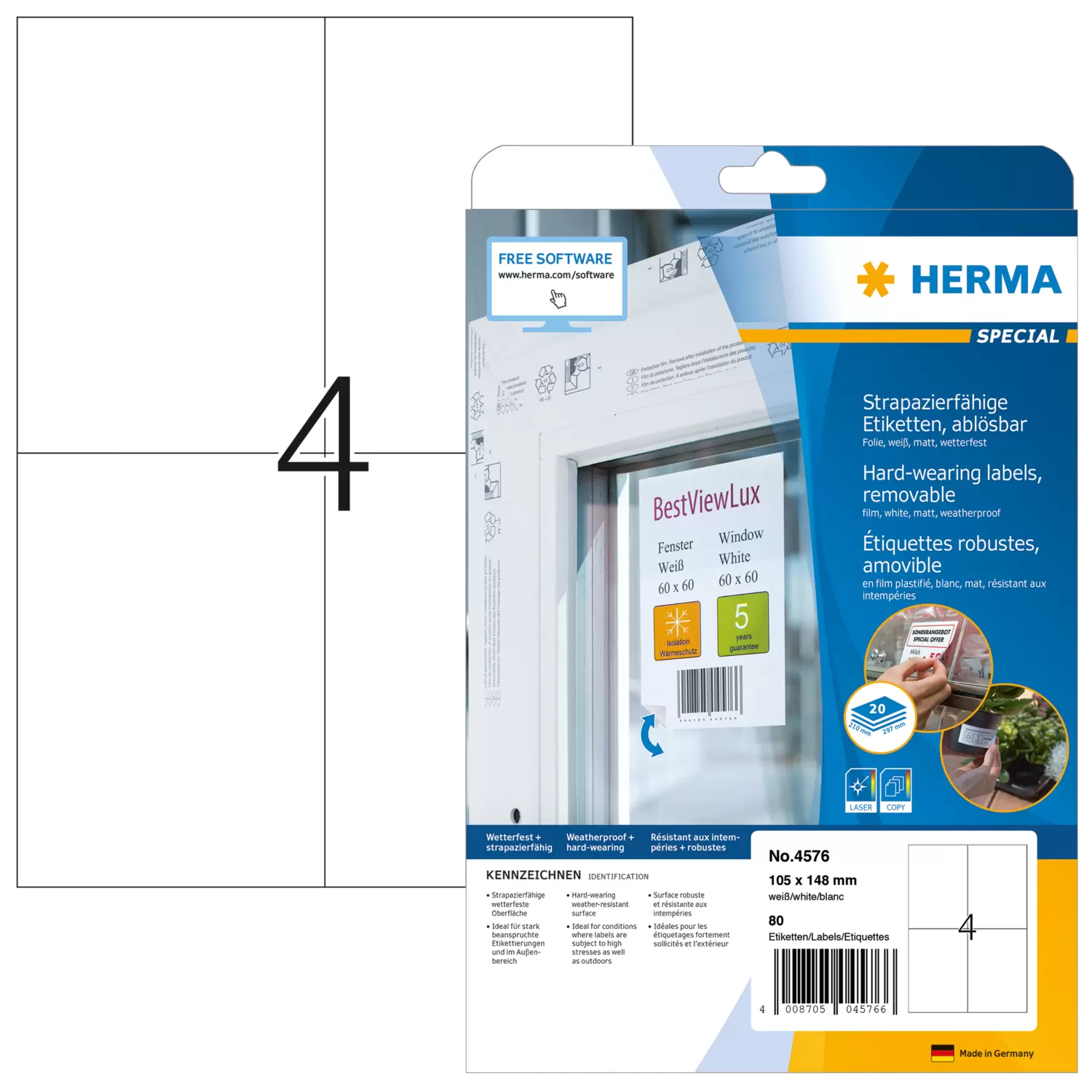 Weervaste folie-etiketten, A4, 105,0 x 148,0 mm, wit, verwijderbaar