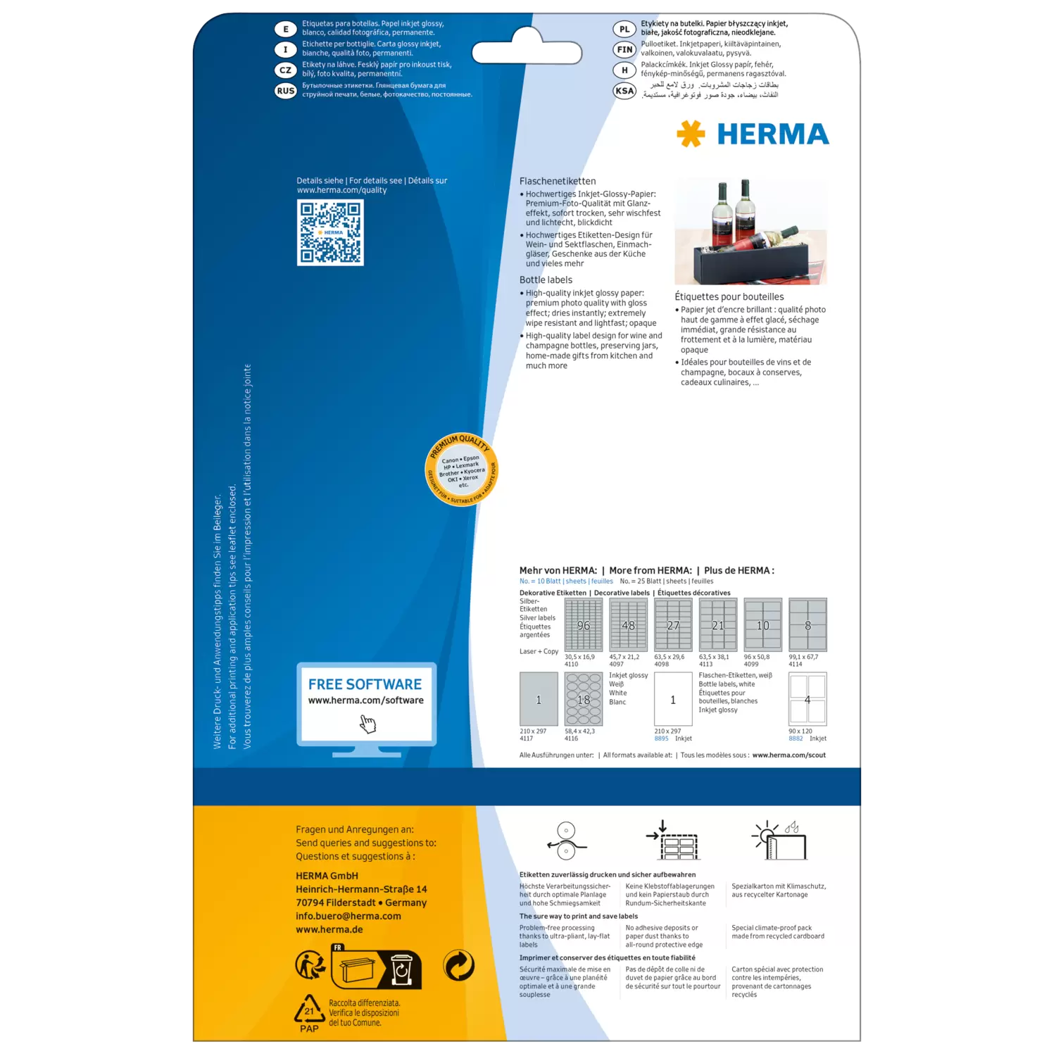Flesetiketten, inkjet, A4, 90 x 120 mm, van glossy-papier, wit, permanent hechtend