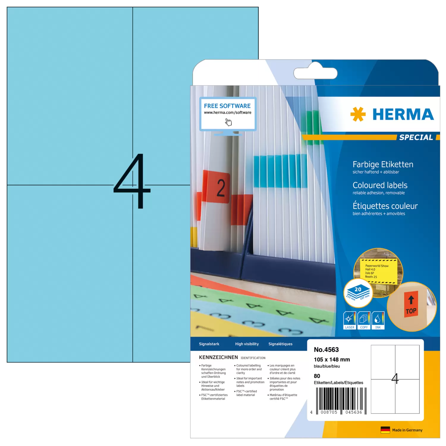 Gekleurde etiketten, A4, 105 x 148 mm, blauw, verwijderbaar