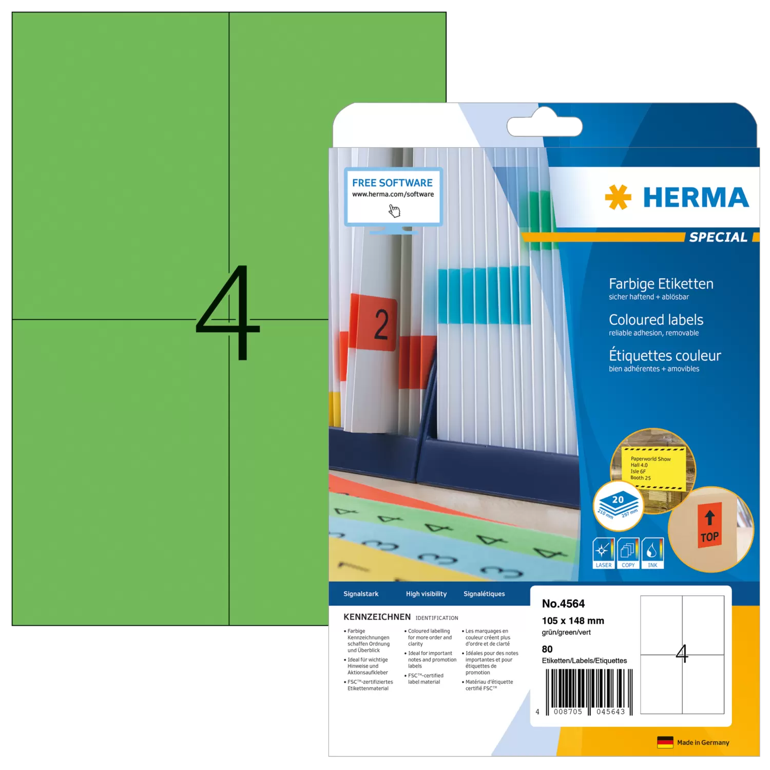 Gekleurde etiketten, A4, 105 x 148 mm, groen, verwijderbaar