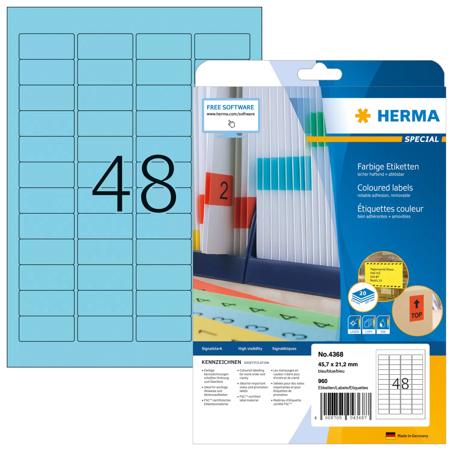 Gekleurde etiketten, A4, 45,7 x 21,2 mm, blauw, verwijderbaar
