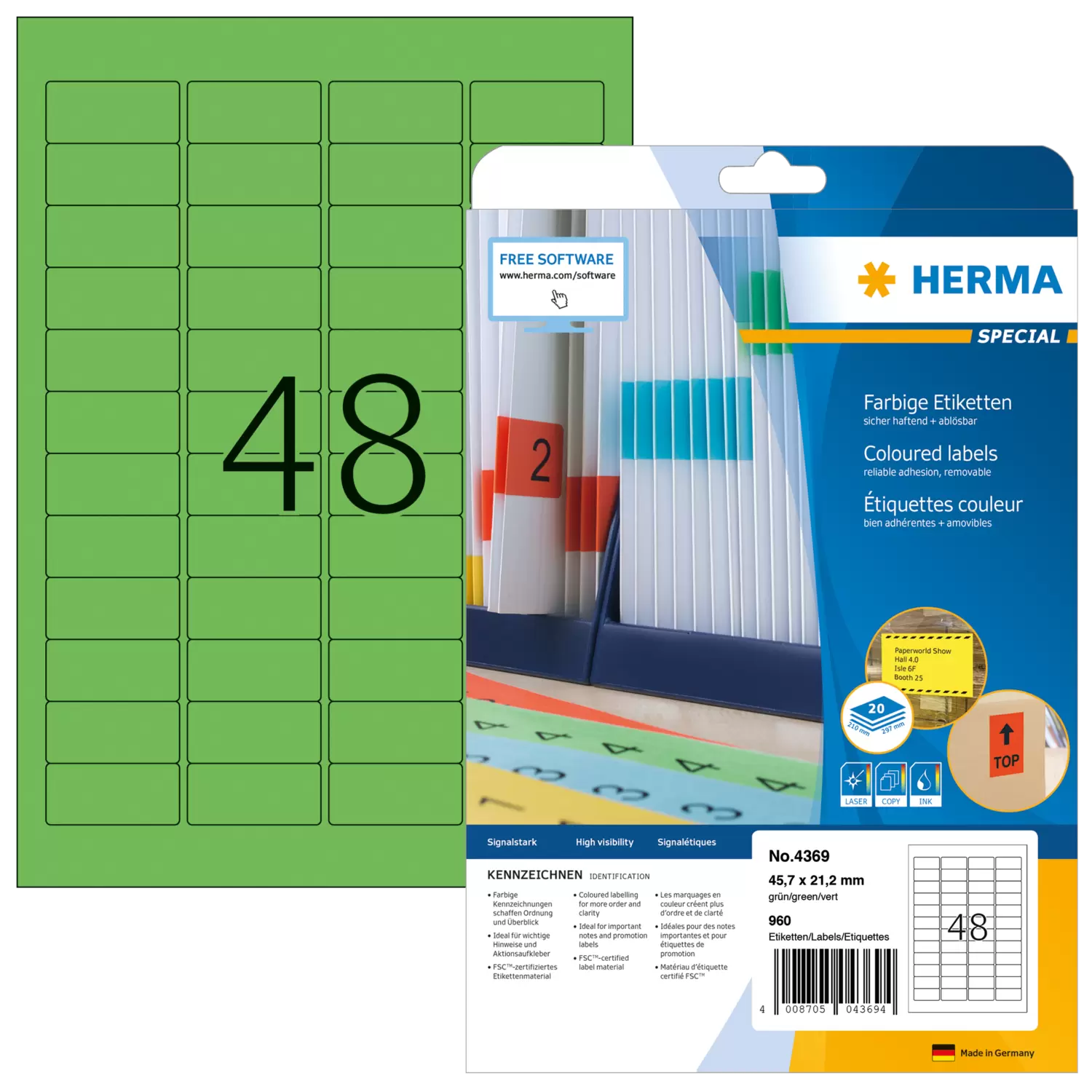 Gekleurde etiketten, A4, 45,7 x 21,2 mm, groen, verwijderbaar