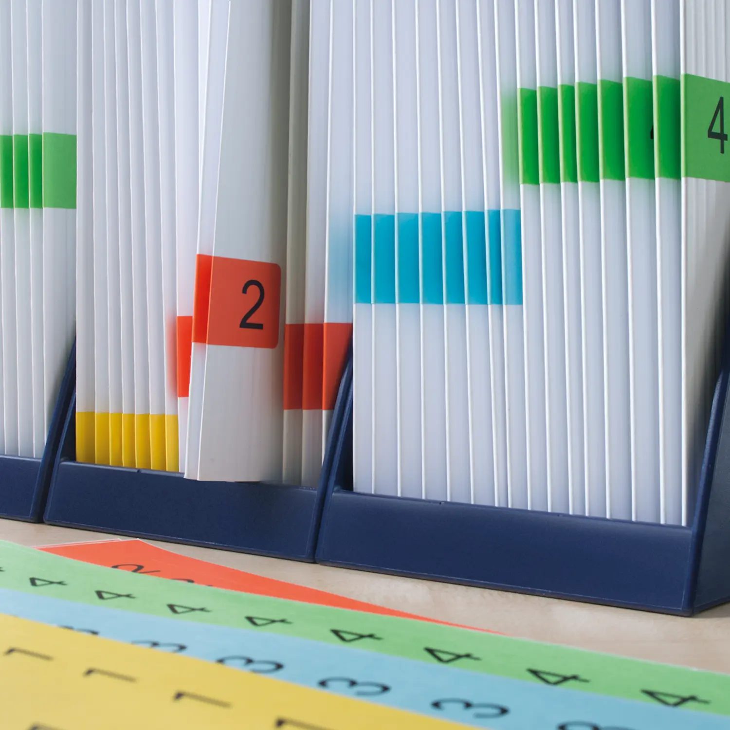 - Gekleurde etiketten zorgen voor orde en overzicht, ideaal ook voor het benadrukken van belangrijke informatie