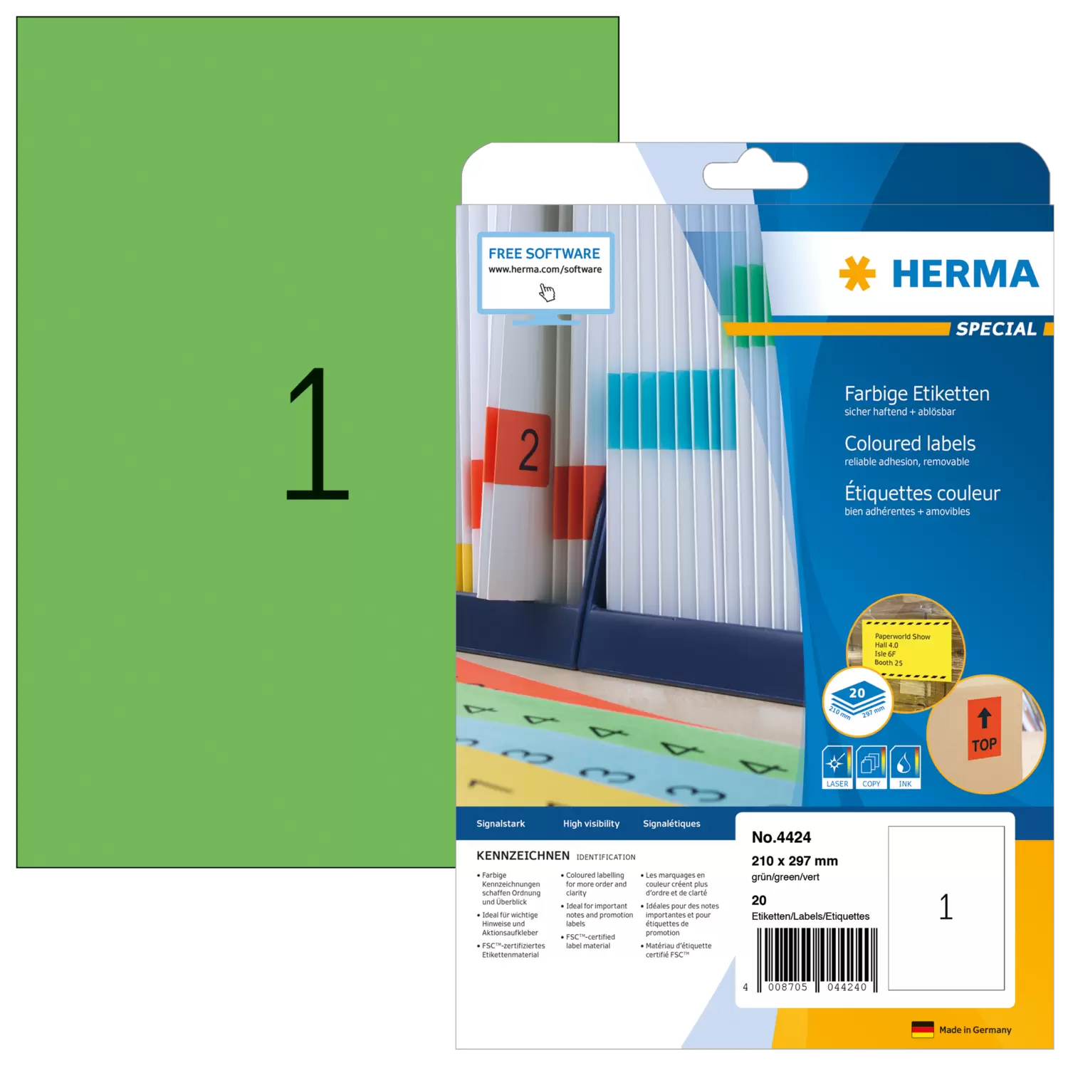 Gekleurde etiketten, A4, 210 x 297 mm, groen, verwijderbaar