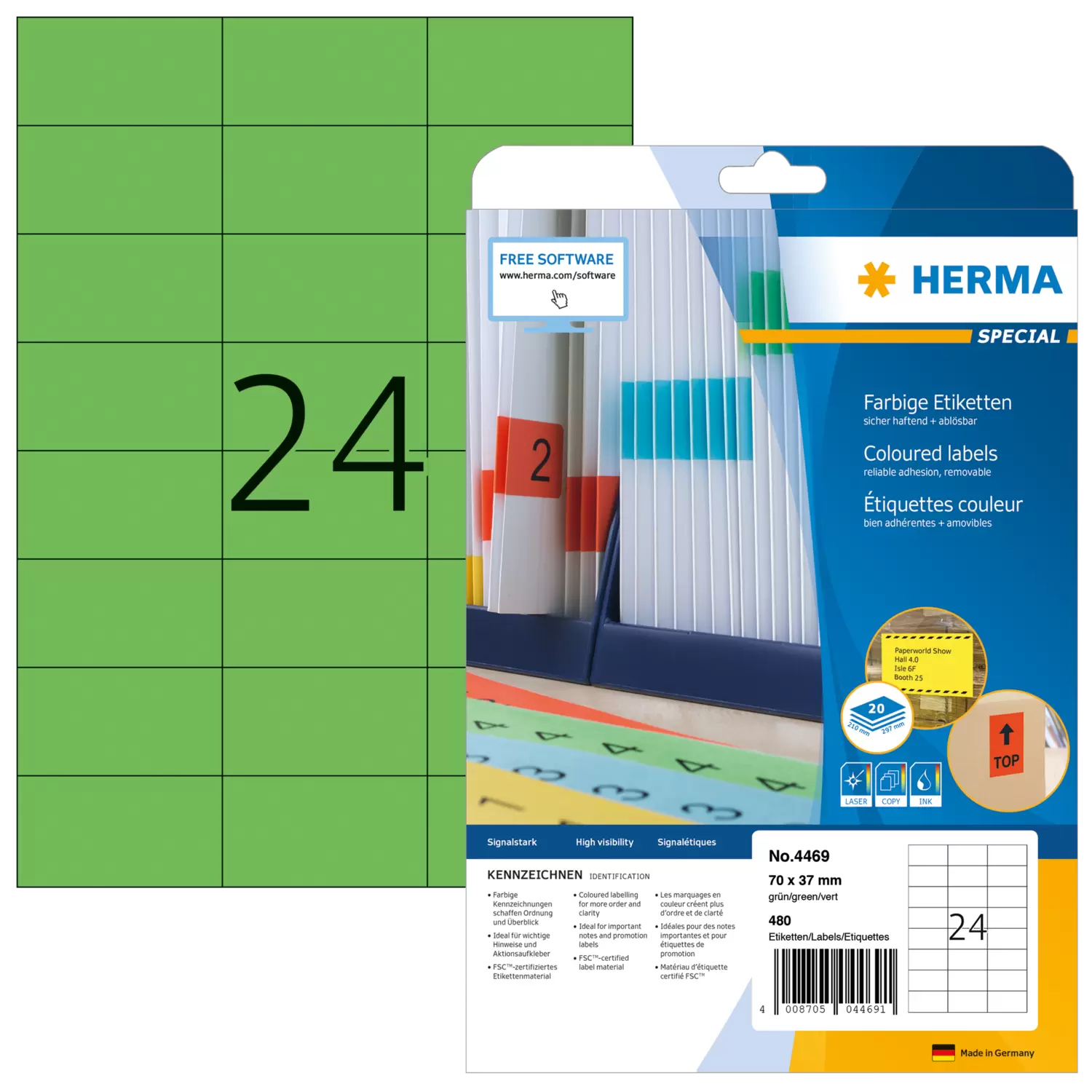Gekleurde etiketten, A4, 70 x 37 mm, groen, verwijderbaar