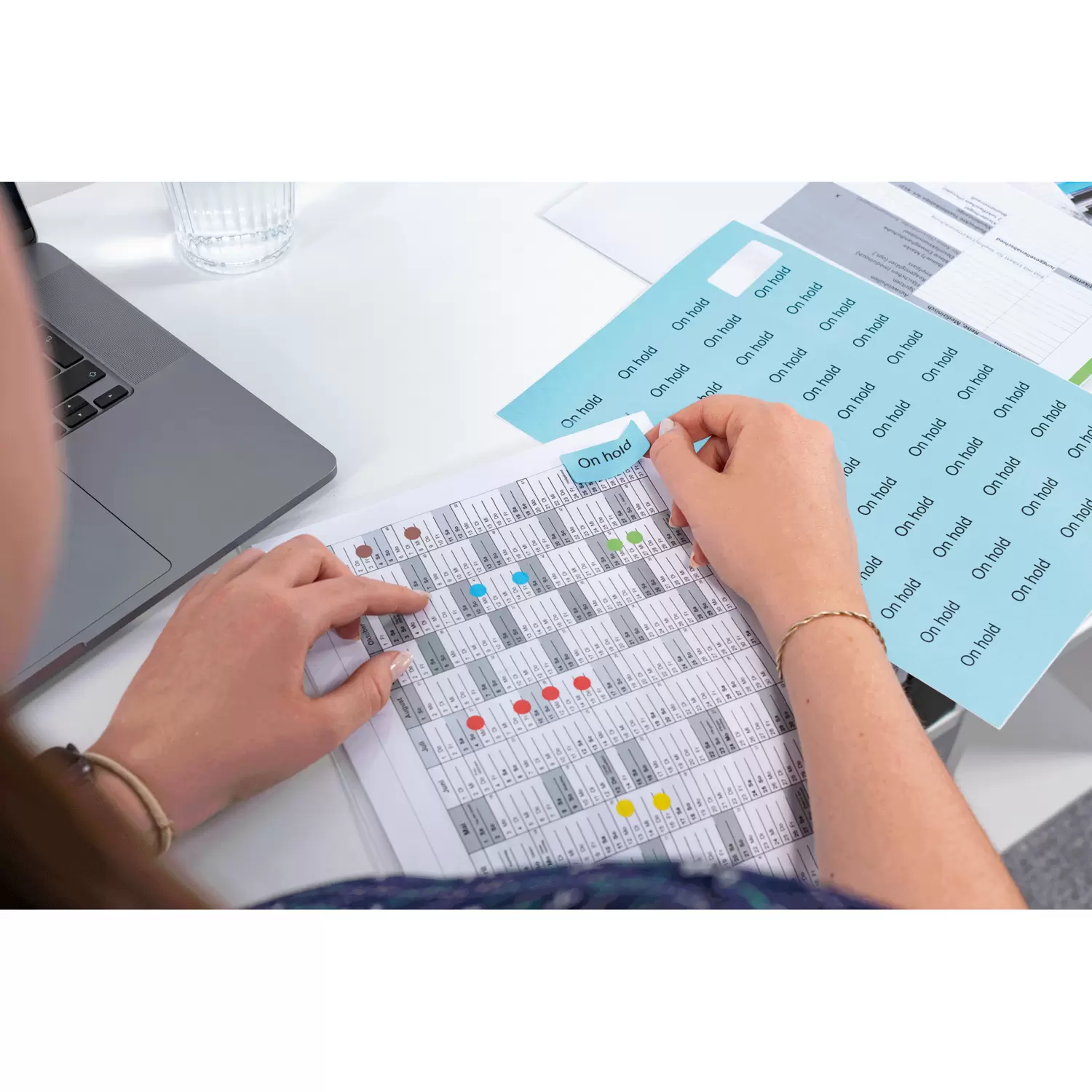 • Gekleurde etiketten zorgen voor orde en overzicht, ideaal ook voor het benadrukken van belangrijke informatie