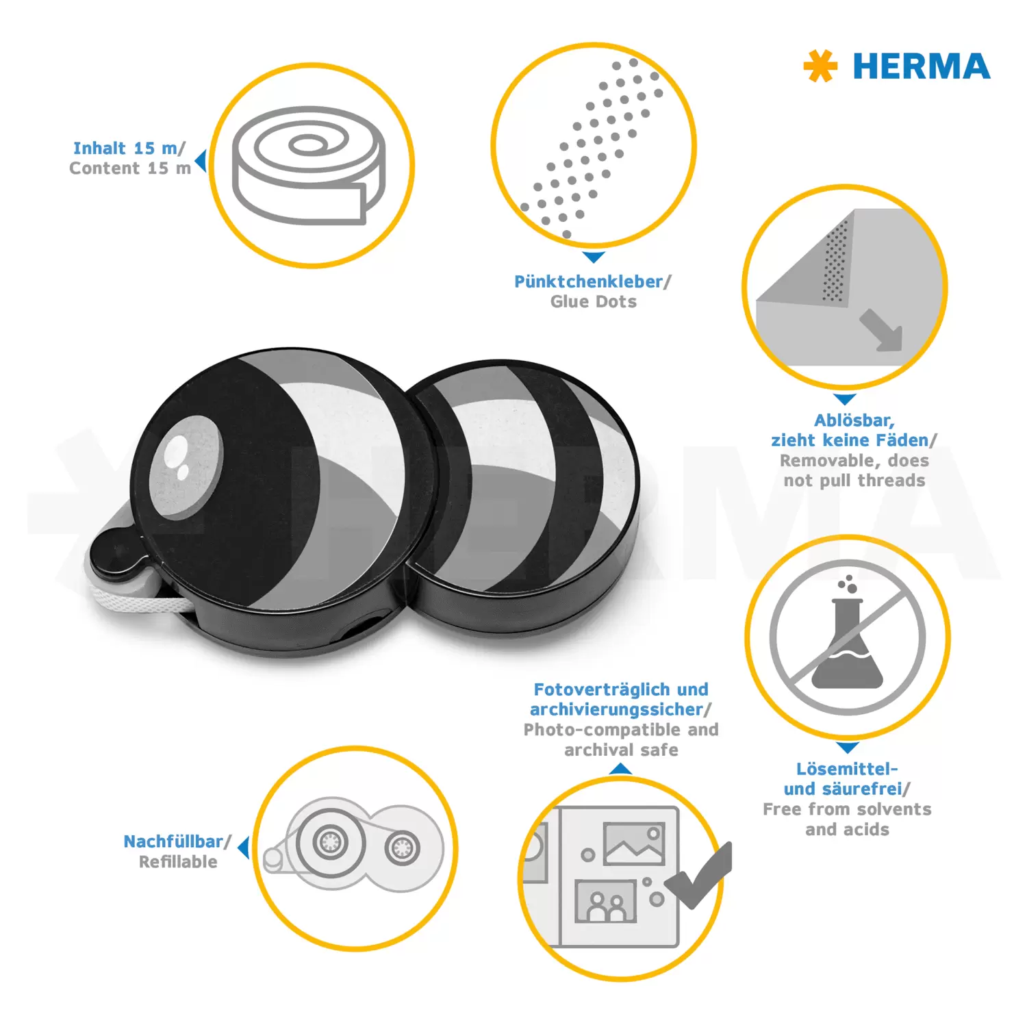 Ja, de resten van de lijmstrook kunnen heel eenvoudig met de vingers worden afgewreven. Zodoende is ook het opnieuw op een andere plaats aanbrengen geen probleem.