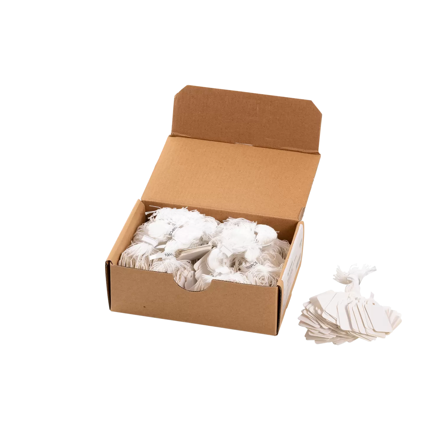 Witte hanglabels voor prijs- en productinformatie. 1000 etiketten per verpakking.