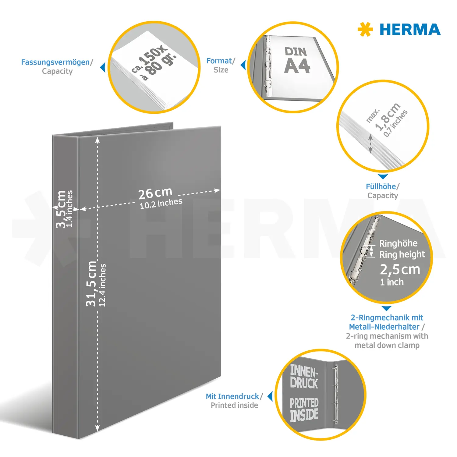 • Geschikt voor DIN A4 brochurehoezen, verdelers en registers