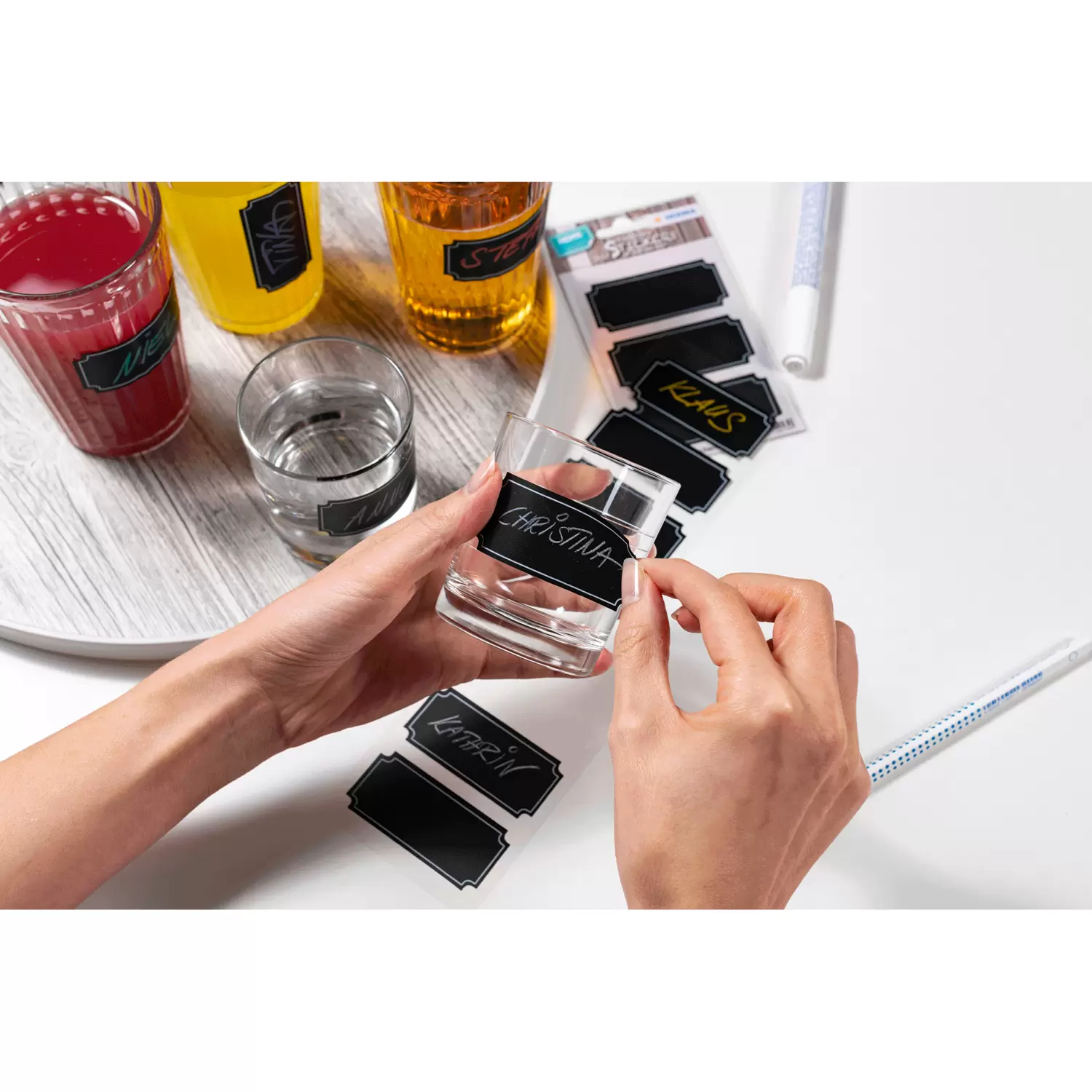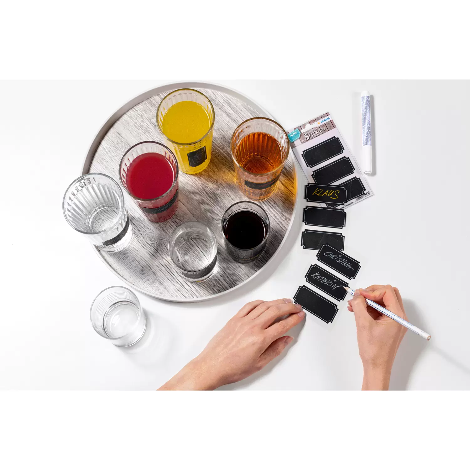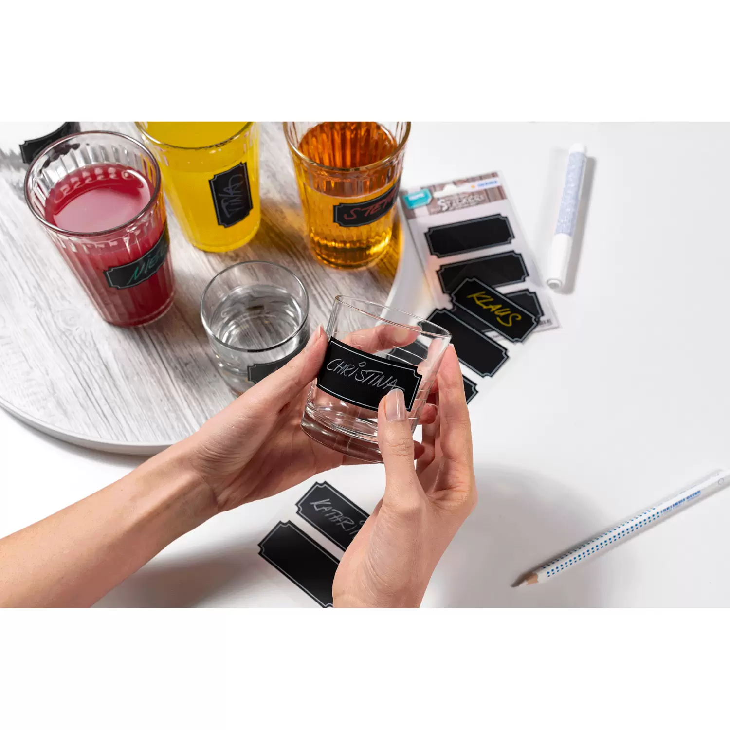 Krijtbordetiketten kunnen ideaal met een bordmarker of een krijtje worden beschreven.