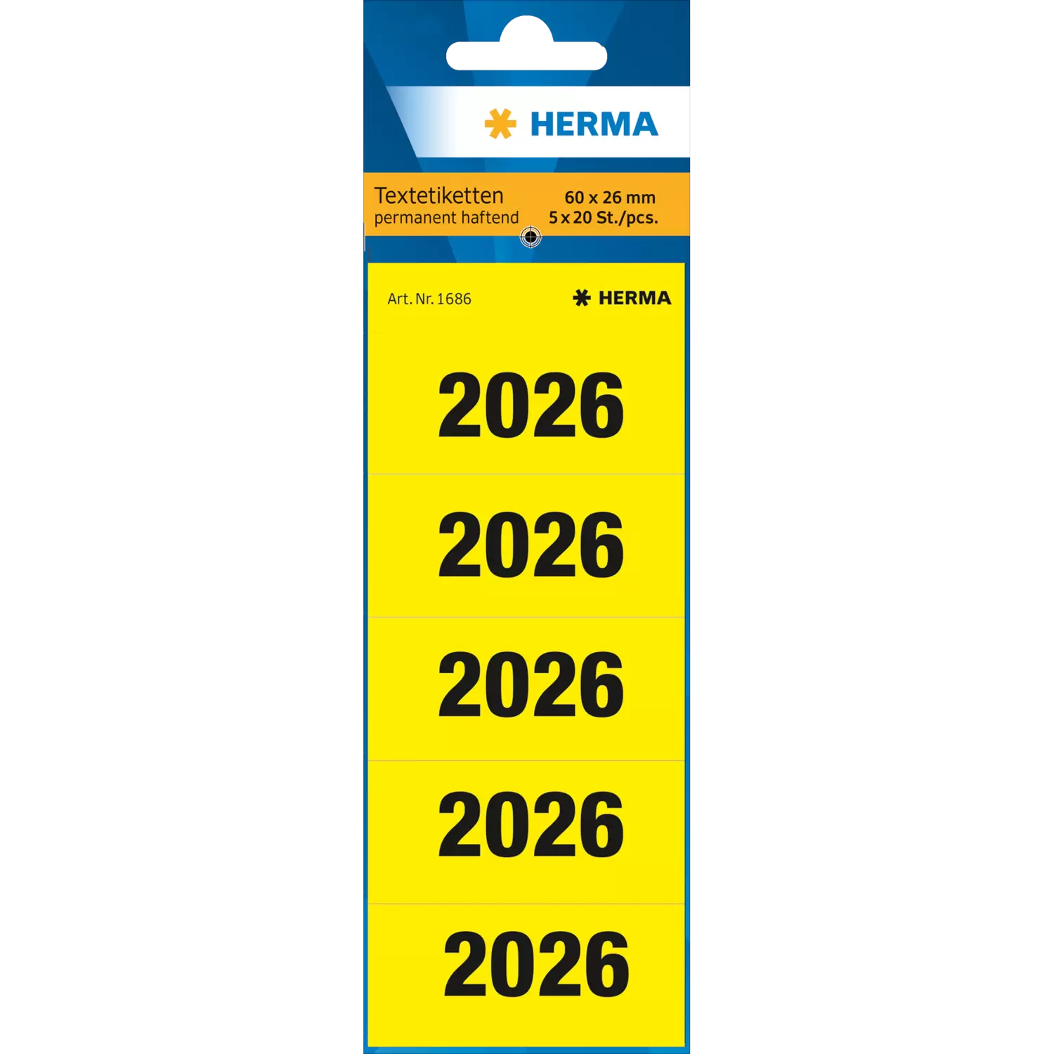 Jaartallen 2026 voor ordners, 60 x 26 mm, geel, permanent hechtend