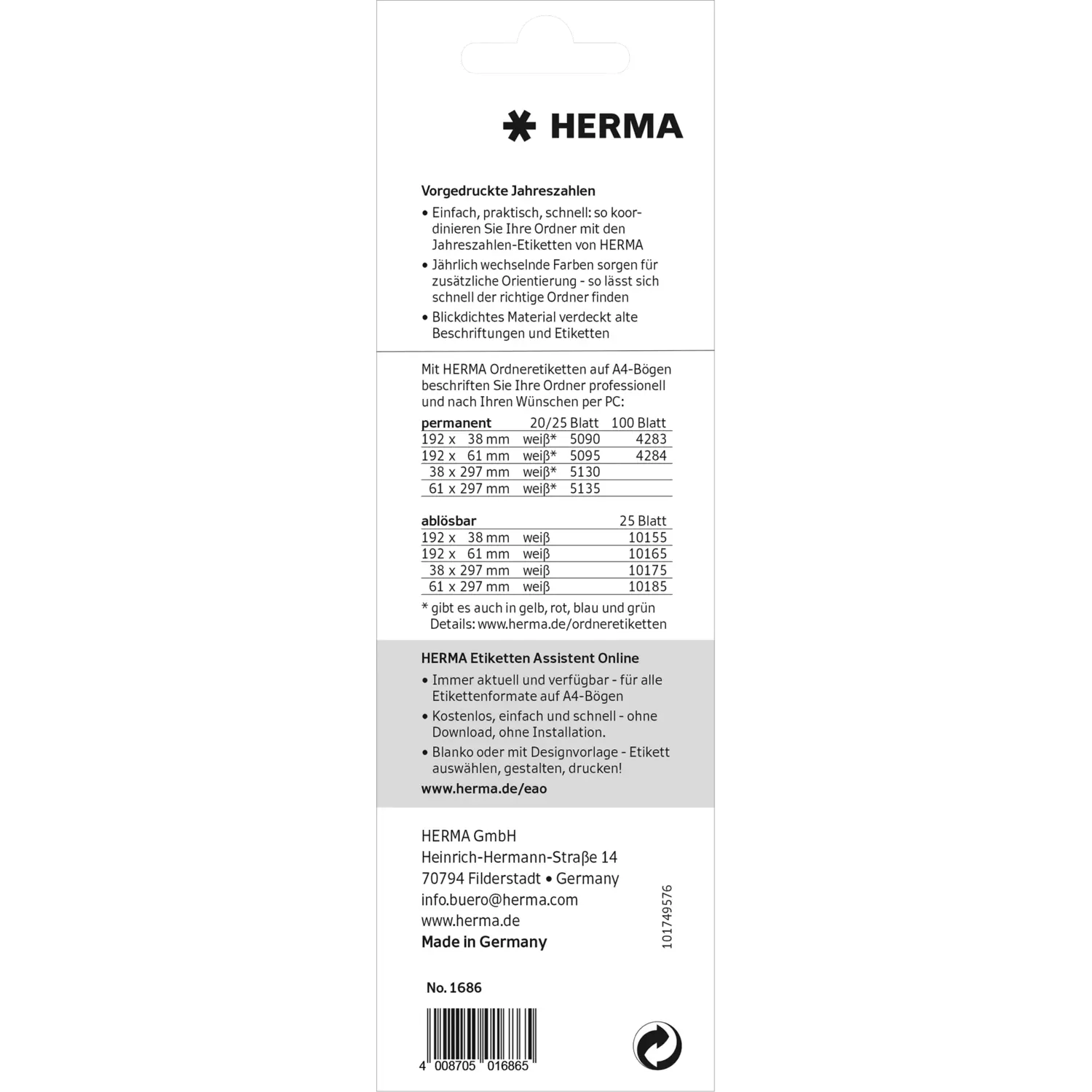 Tekstetiketten met opdruk van het jaargetal, permanent hechtend. Perfect voor de snelle en schonekenmerking van uw archieven, documenten en ordners. De hoogwaardigeetiketten worden vervaardigd van hoogwaardig, chloorvrij gebleektspeciaalpapier met een bijzonder hoge dekkracht en oplosmiddelvrij kleefmiddel. Zvarte jaargetallen, jaarlijks verschillende kleuren van het etiketten.
