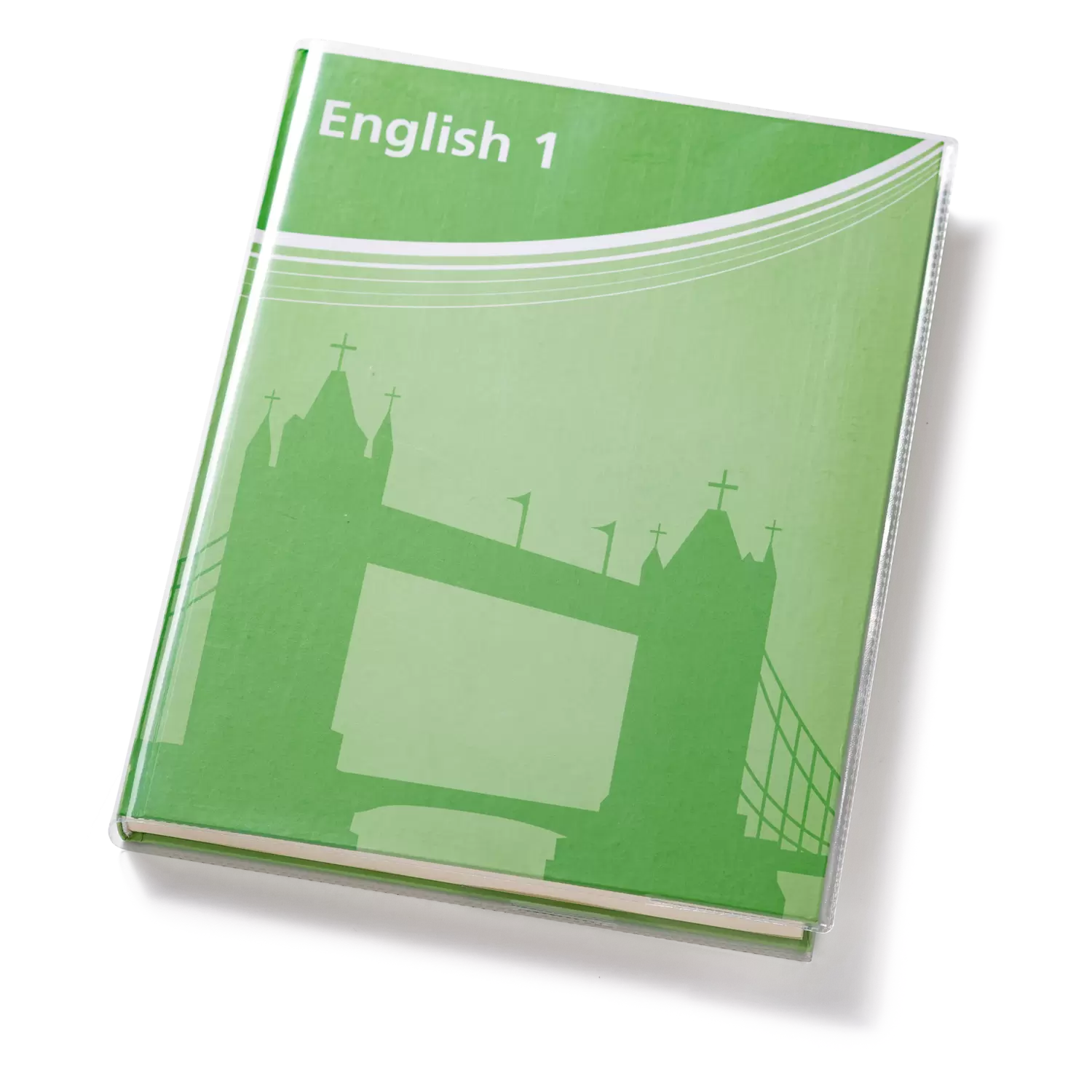 1. Spreid de boekenkaft uit op het werkblad en leg het te kaften boek op de folie. 2. Schuif de kaft van het boek in de kant-en-klare flap en vouw de tweede open flap één keer om, om de rug van het boek erin te schuiven. 3. Sluit nu het boek en u hebt meteen een perfect gekaft boek.
