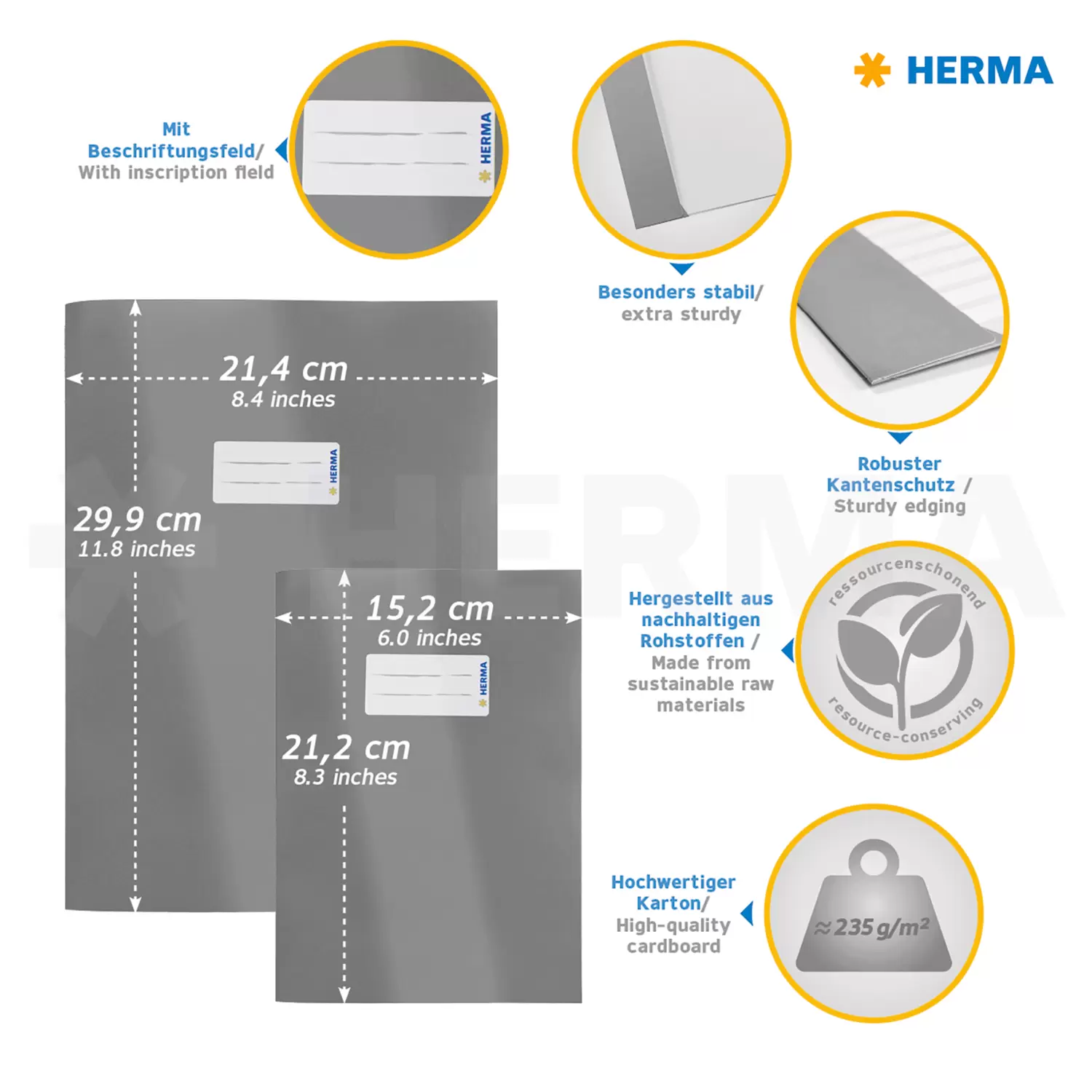 Deze bruine schriftkaft van HERMA is geschikt voor alle A4-schriften en -boekjes. De omslag biedt een optimale bescherming voor werkpaperassen, schoolschriften of cahiers. De dagelijkse paperassen en papieren voor school, universiteit of werk worden beschermd tegen gebruikssporen en je hoeft niet meer bang te zijn voor vouwen en ezelsoren. Omslagen van HERMA zijn helemaal zonder plastic gemaakt van stevig karton en daardoor robuust en resistent. Het stevige materiaal van extra sterk papier is van beproefde HERMA-kwaliteit en milieuvriendelijker dan traditionele kaften van plastic. De omslag voor schriften en boekjes is de optimale DIN A4-hoes voor alle schriften en boekjes die niet meer blootgesteld mogen worden aan vocht en vuil, zodat de inhoud veilig beschermd is. Qua kleur is er voor elk wat wils en kan er uit 16 kleuren worden gekozen. Op het etiket, dat goed zichtbaar aan de voorkant is aangebracht, kan informatie over de eigenaar, het vak of een verwijzing naar de inhoud worden geschreven. Zo blijven alle schriften en boekjes ordelijk en netjes.