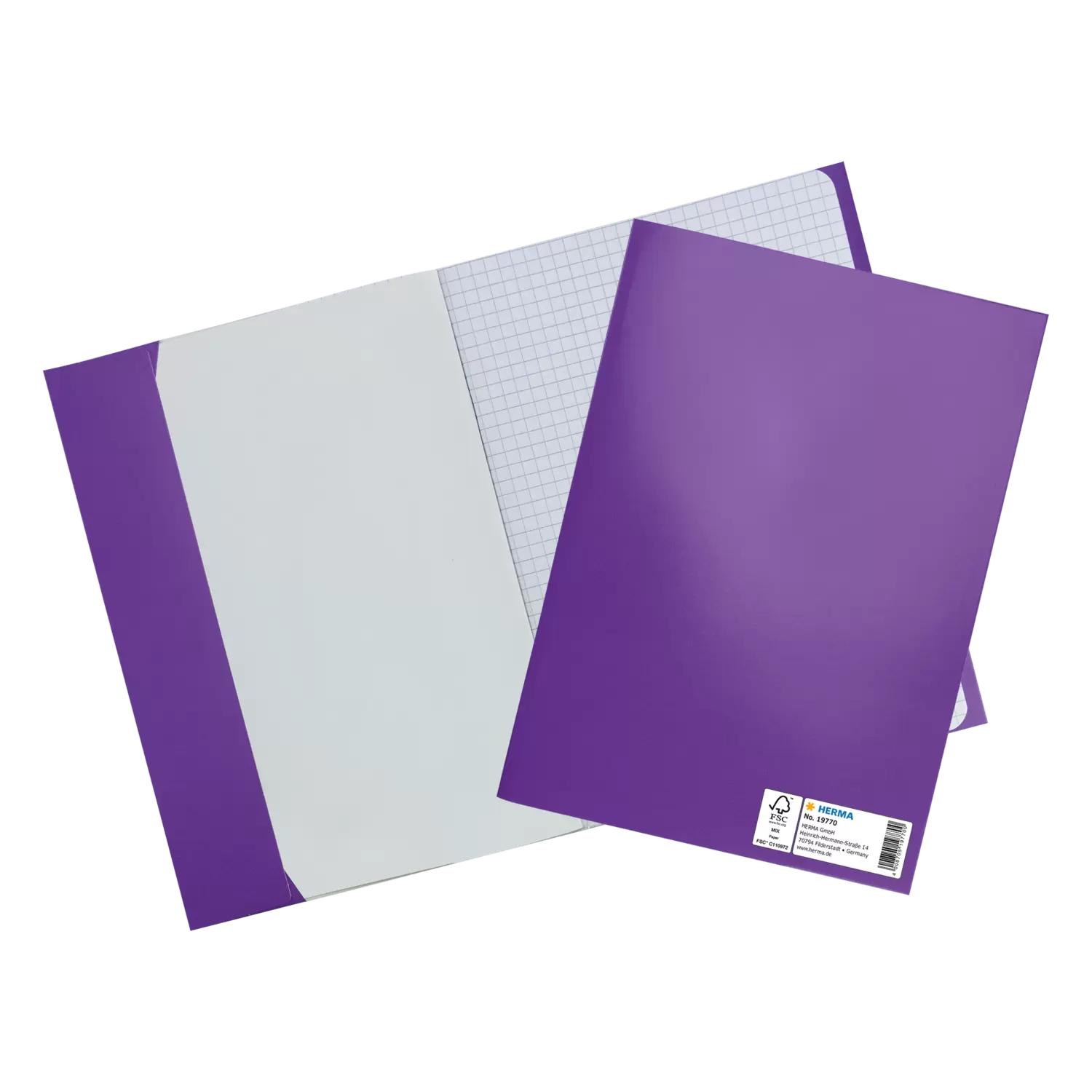 Deze paarse schriftkaft van HERMA is geschikt voor alle A5-schriften en -boekjes. De omslag biedt een optimale bescherming voor werkpaperassen, schoolschriften of cahiers. De dagelijkse paperassen en papieren voor school, universiteit of werk worden beschermd tegen gebruikssporen en je hoeft niet meer bang te zijn voor vouwen en ezelsoren. Omslagen van HERMA zijn helemaal zonder plastic gemaakt van stevig karton en daardoor robuust en resistent. Het stevige materiaal van extra sterk papier is van beproefde HERMA-kwaliteit en milieuvriendelijker dan traditionele kaften van plastic. De omslag voor schriften en boekjes is de optimale DIN A5-hoes voor alle schriften en boekjes die niet meer blootgesteld mogen worden aan vocht en vuil, zodat de inhoud veilig beschermd is. Qua kleur is er voor elk wat wils en kan er uit 16 kleuren worden gekozen. Op het etiket, dat goed zichtbaar aan de voorkant is aangebracht, kan informatie over de eigenaar, het vak of een verwijzing naar de inhoud worden geschreven. Zo blijven alle schriften en boekjes ordelijk en netjes.
